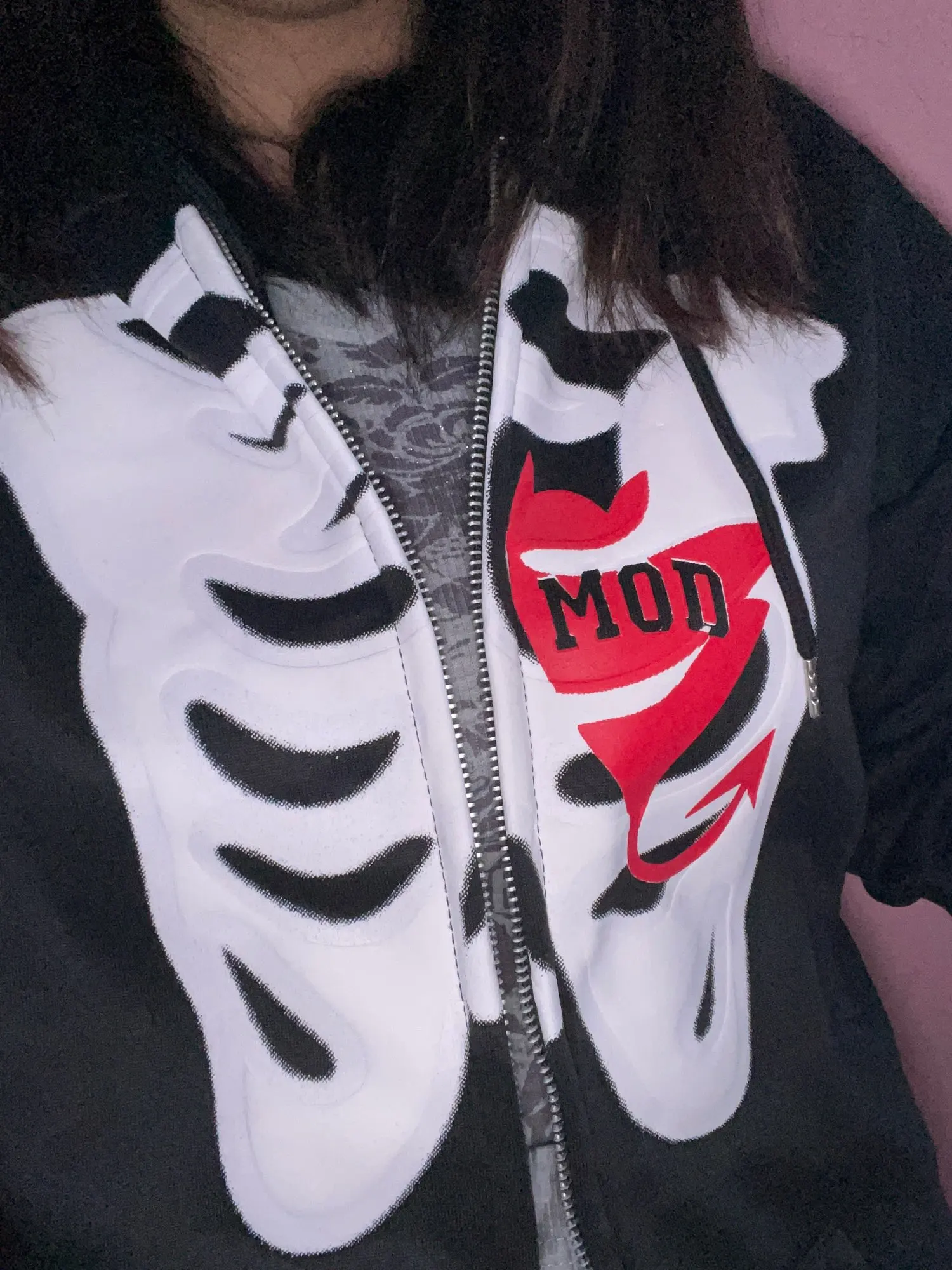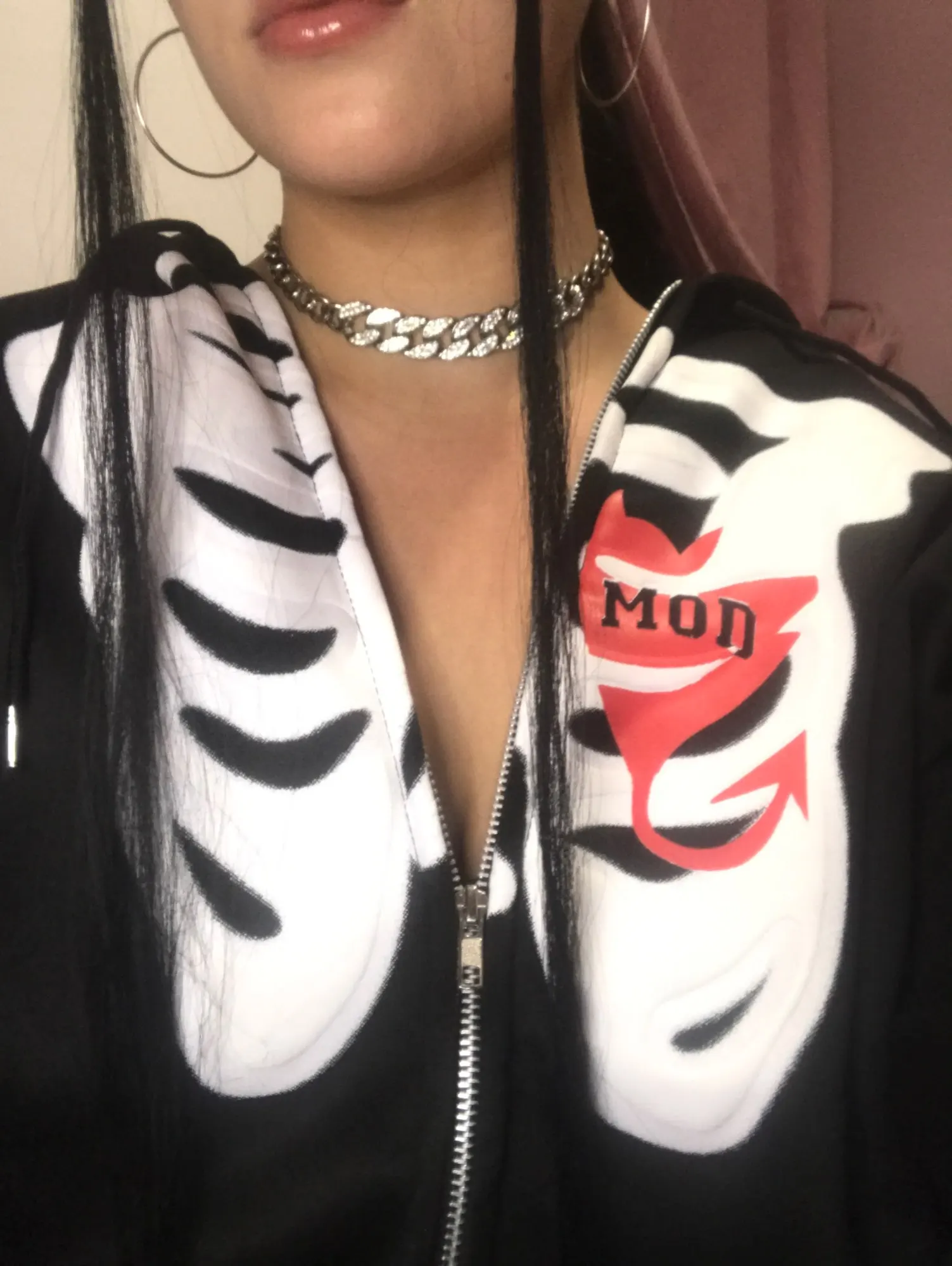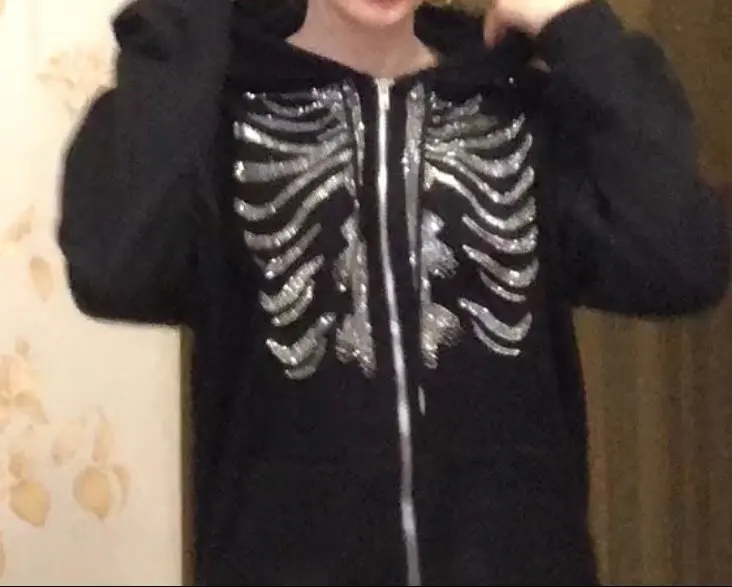 Y2K Стразы худи Скелет женские готические черные на молнии оверсайз толстовки Harajuku Черепа с капюшоном Осенняя уличная одежда