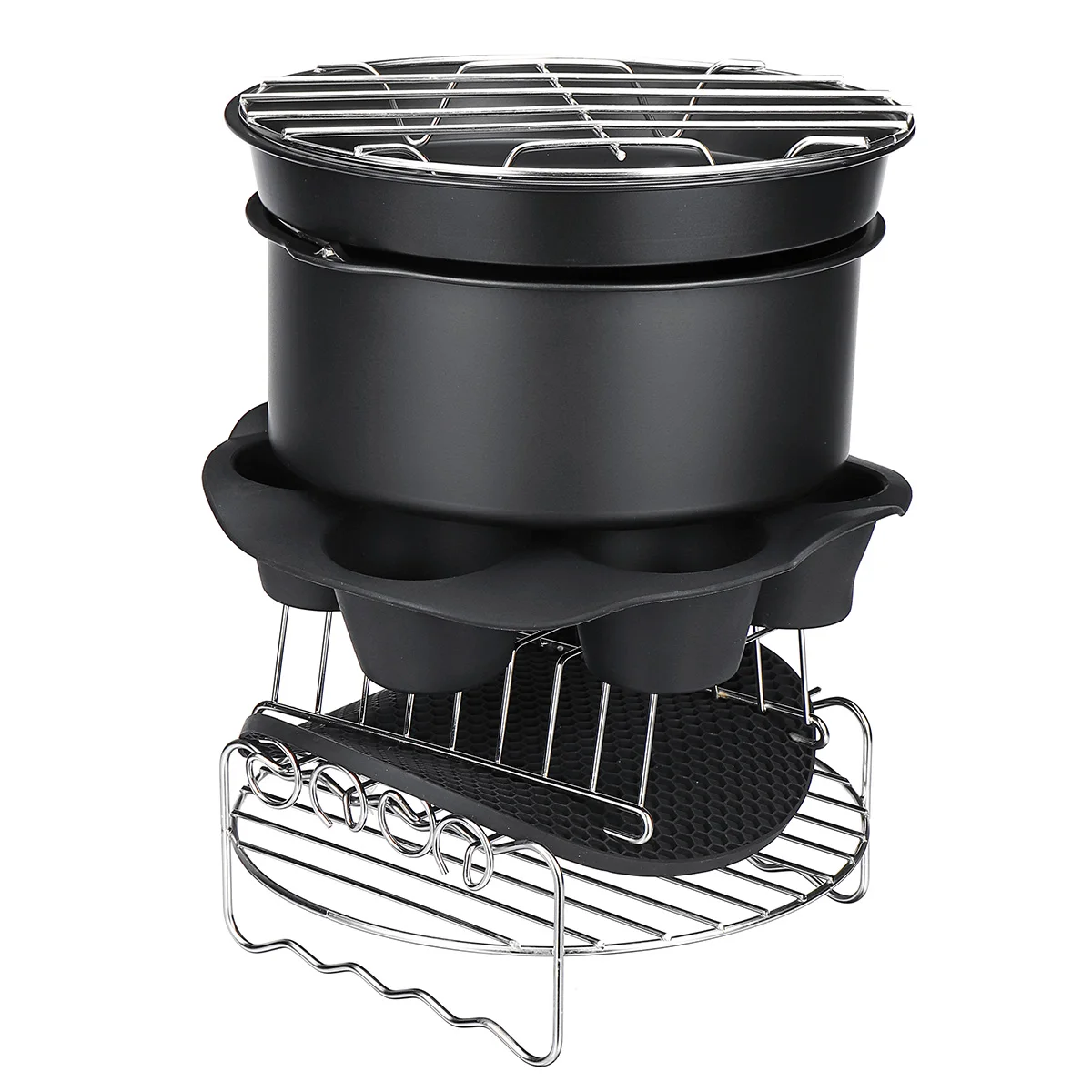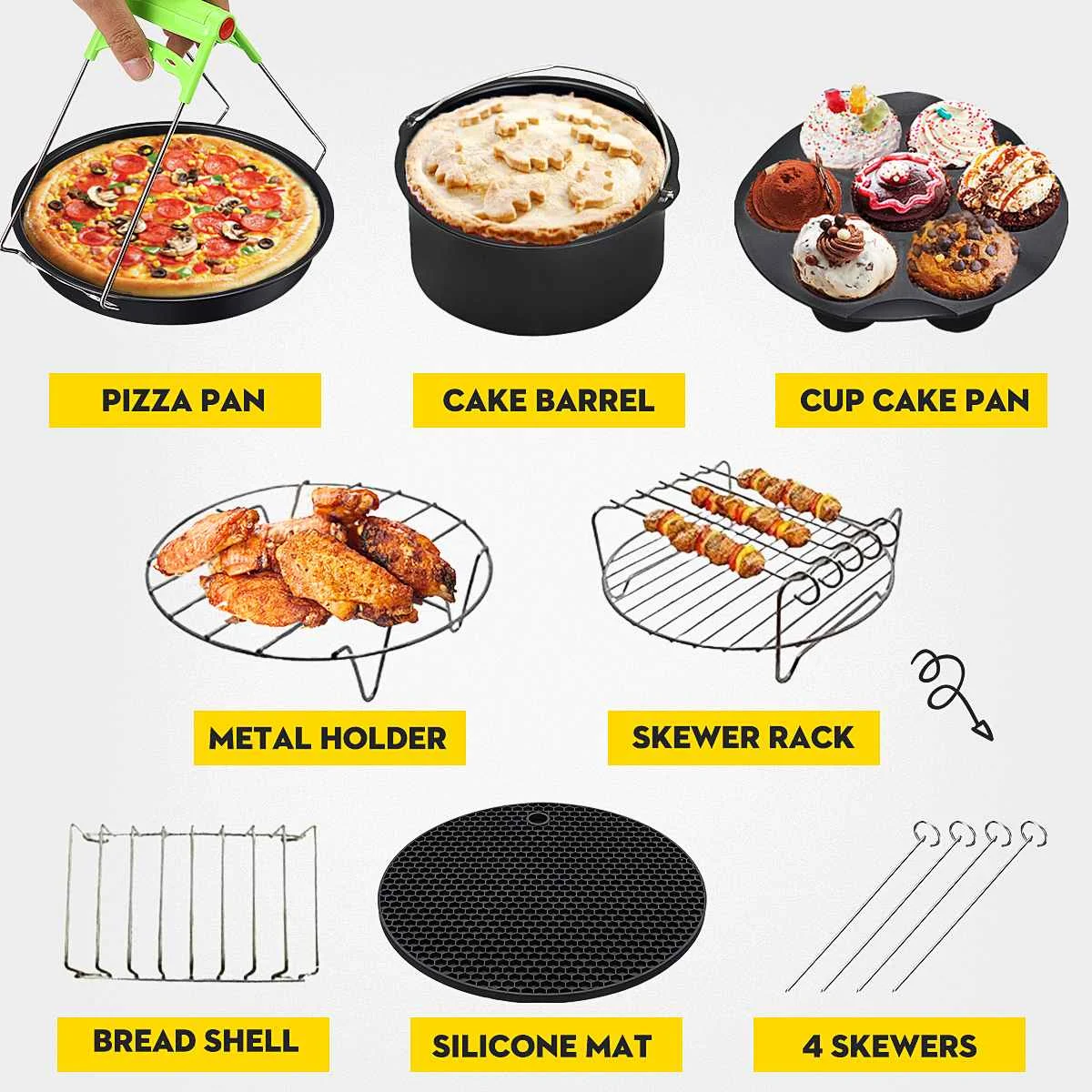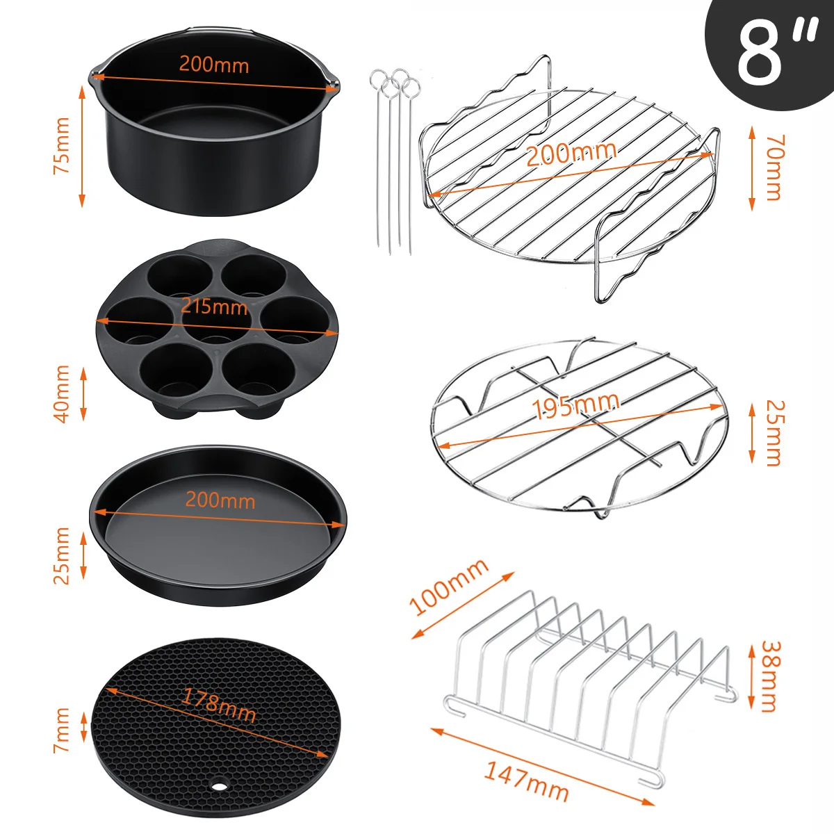 11 шт., аксессуары для фритюрницы, 8 дюймов, подходит для фритюрницы 5,2-кг, корзина для выпечки, тарелка для пиццы, гриль, горшок, кухонный инструмент для готовки Вечерние
