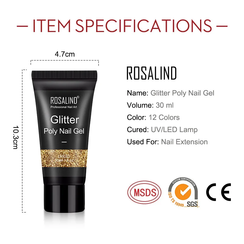 ROSALIND15mlPolyNailGelHotSaleFashion ColorsQuickBuilderExtensionХарактеристики Товара:Название бренда: ROSALINDНазвание: Цветной полиналгельОбъем: 30 млИспользуется для: наращивания ногтейИзлеченная: УФ/Светодиодная лампа