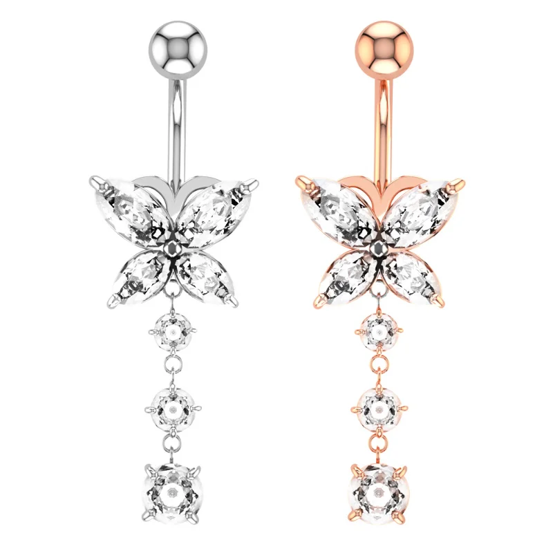 2021 циркониевая бабочка, пупка, кольцо, модная хирургическая сталь пирсинг-серьги, пупка, кольца для пирсинга живота, ювелирные изделия для тела