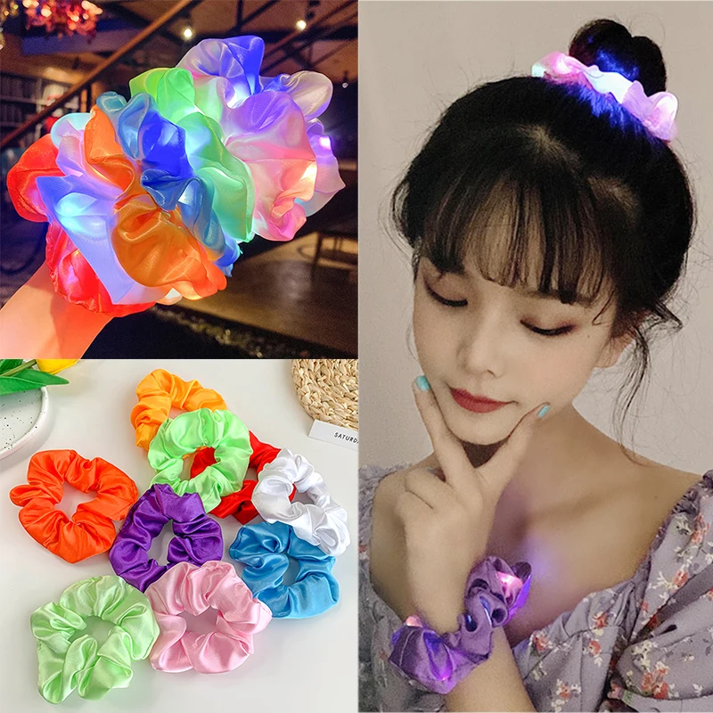 СВЕТОДИОДНЫЙ световой волосы трикотажные резинки для волос для женщ...