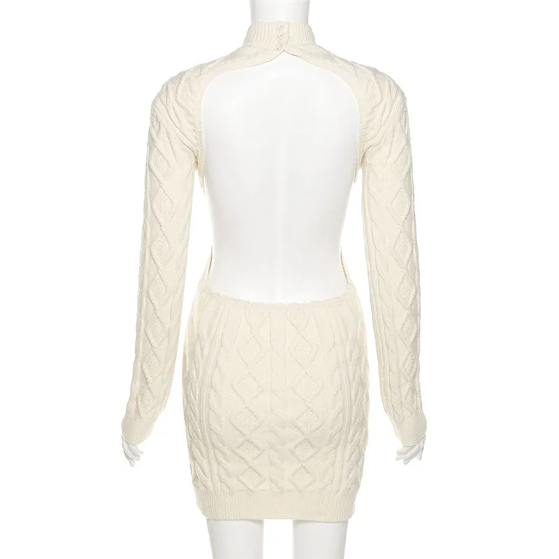 Женское трикотажное мини-платье, элегантное теплое платье с длинным рукавом и открытой спиной, Осень-зима