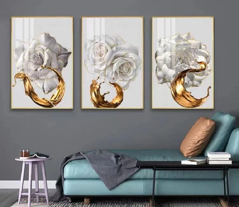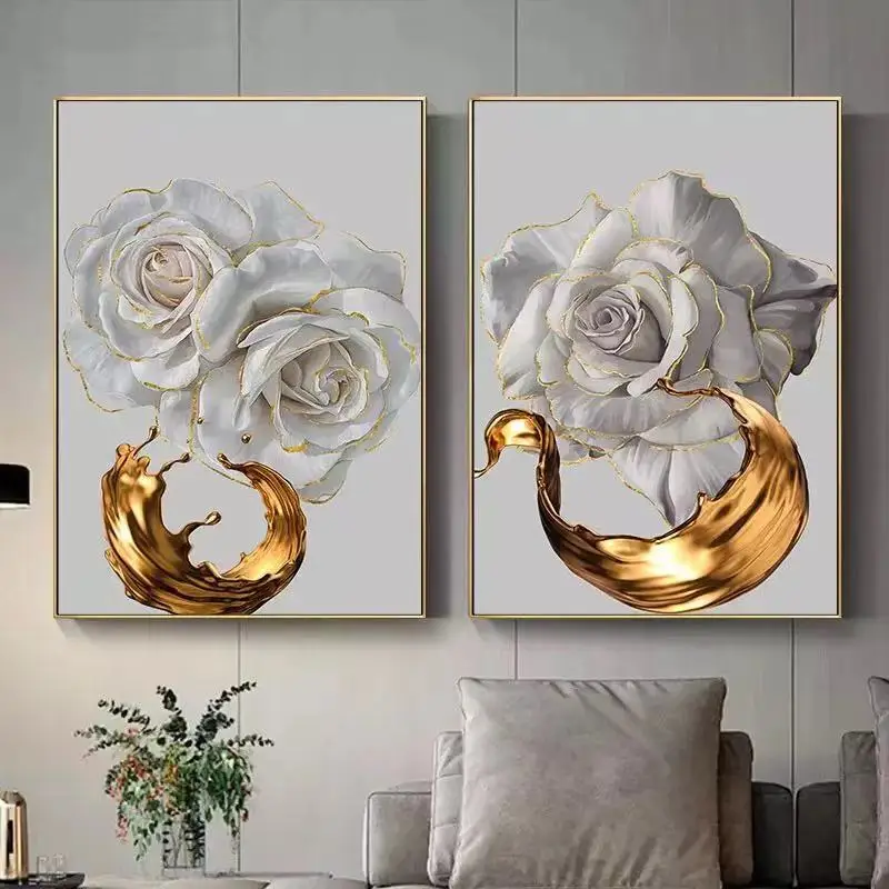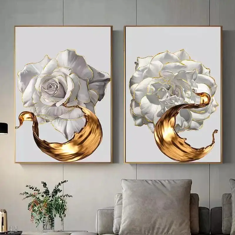 Постеры без рамки с изображением цветов из белого розового золота х...