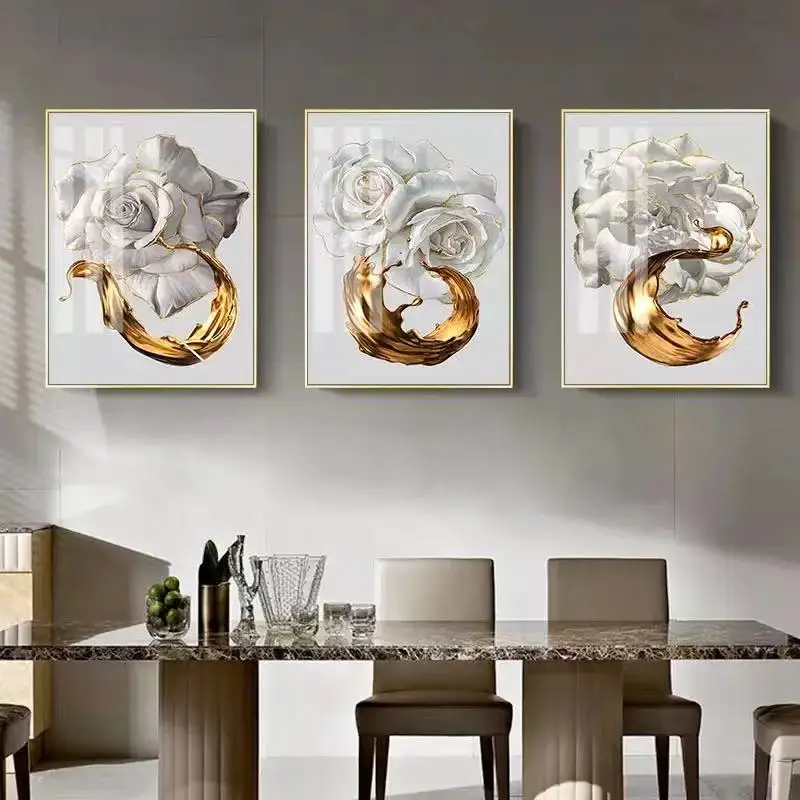 Плакат абстрактный с изображением белых роз и золотых чернил, Карти...