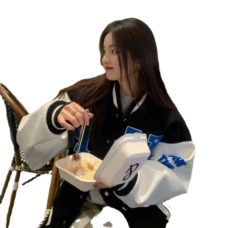 Женская бейсбольная форма с буквенным принтом, однобортная куртка о...