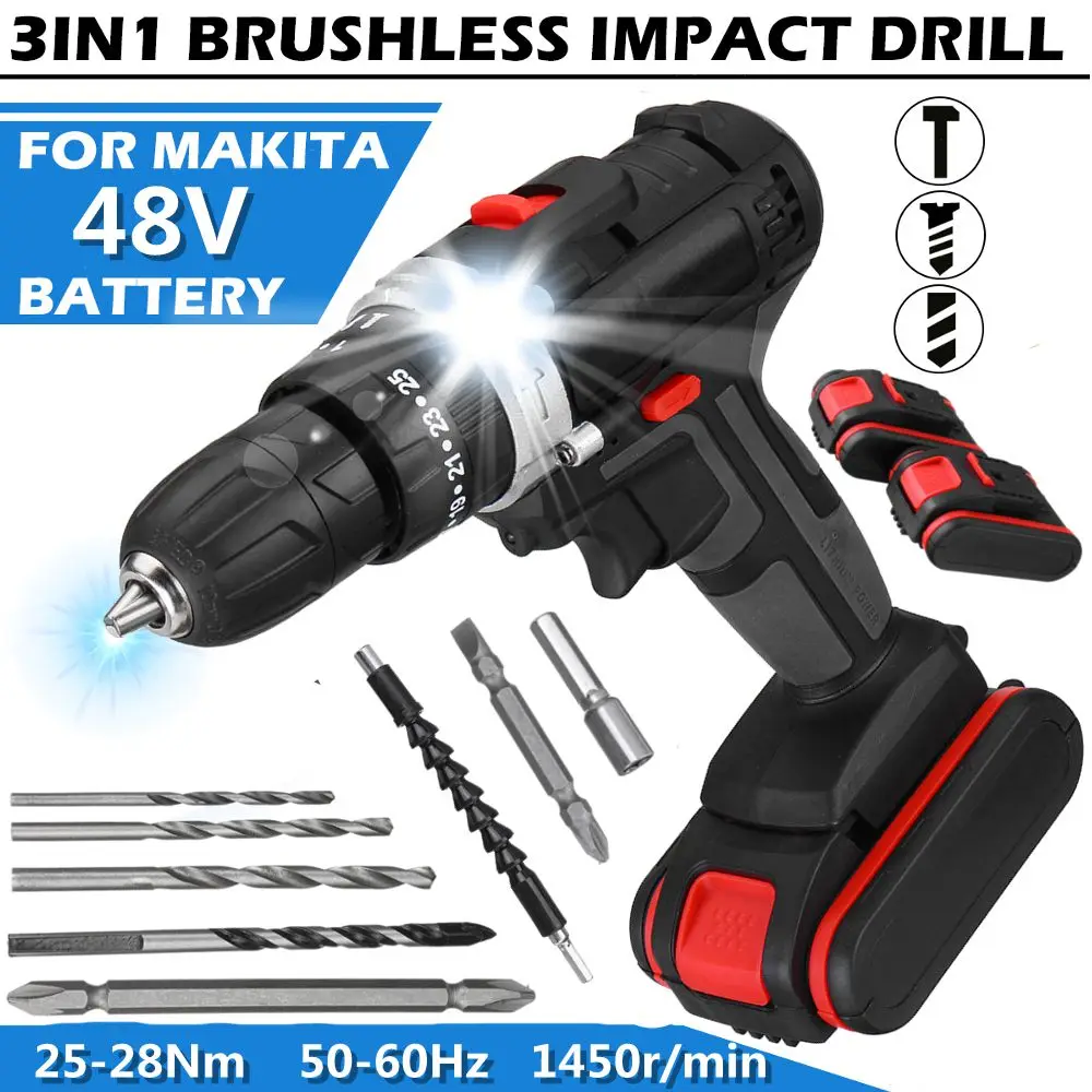 Электродрель и отвертка BLMIATKO 48 в 3 в 1, 2 скорости, 25 + 3 турских инструмента, Аккумулятор 6000 мАч, аксессуары для дрели