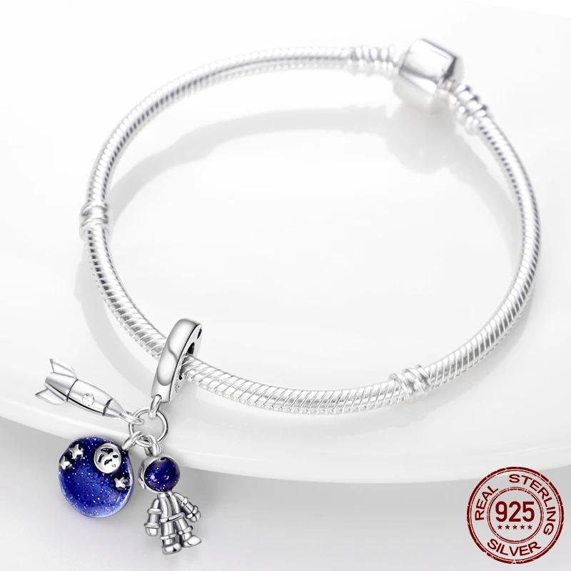 Подвеска-Шарм в виде астронавта, серебристого цвета, для браслета P...