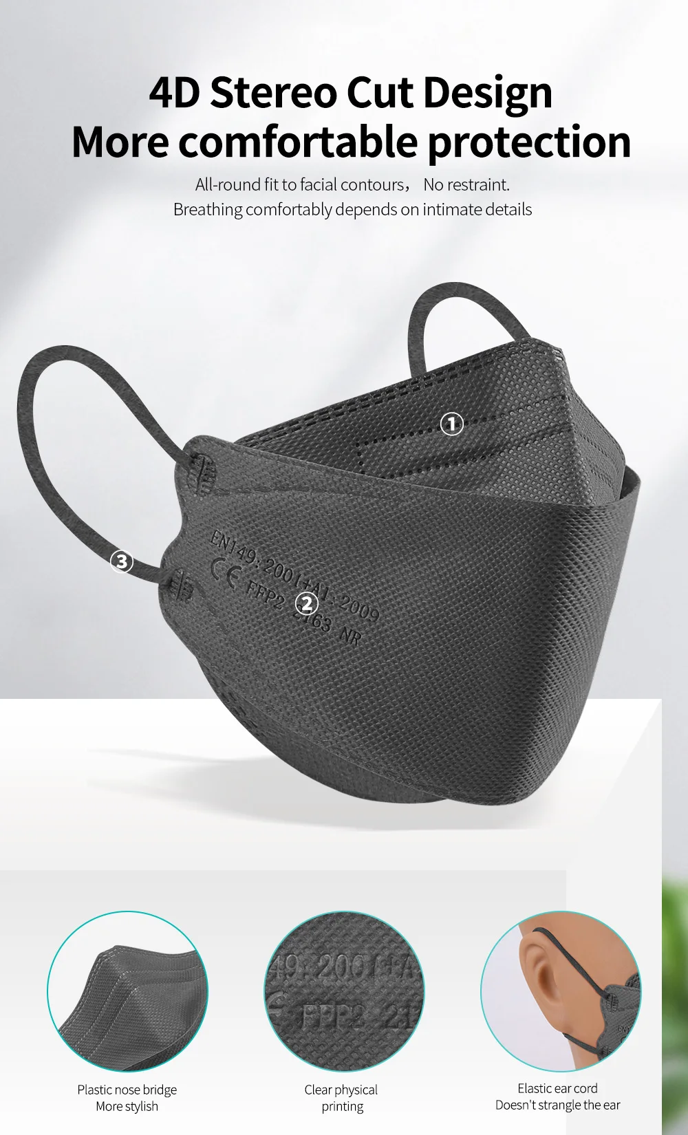 FFP2 Mascarillas Certificadas FFP2Mask CE 4-слойная рыба KN95 Mascarillas FPP2 Homologadas Europe Mask FFP 2 FFP3 FFPP2