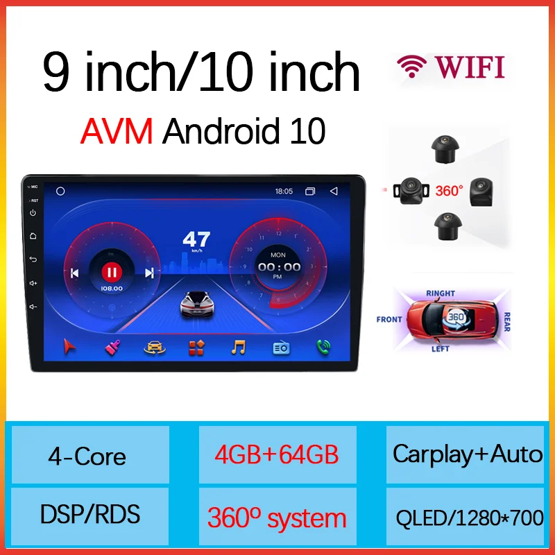 Автомобильный мультимедийный проигрыватель T5, Android 10,0, DSP, IPS, для универсального Авторадио, 4 Гб ОЗУ, 64 Гб ПЗУ, HD 360, вид с птицы, Пано, ОЗУ, GPS, BT, Wi-Fi, 2022
