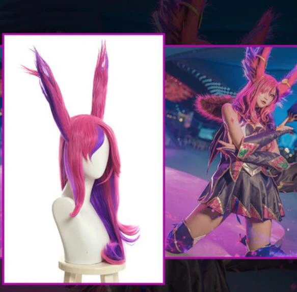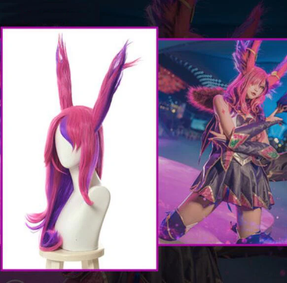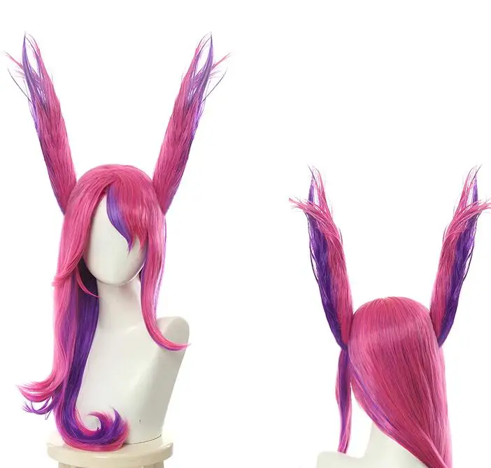 Парик для косплея из аниме азая, LOL Star Guardian, мятежник, розово-фиолетовый с ушами, для ролевых игр, для вечеринки, карнавала, Хэллоуина