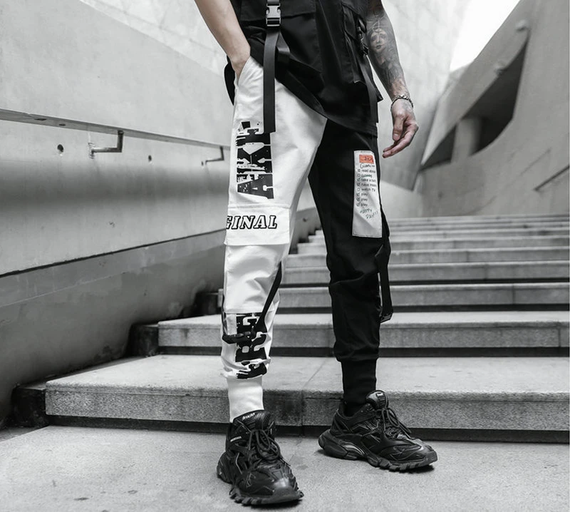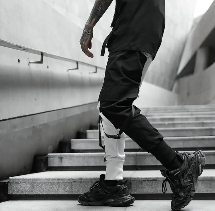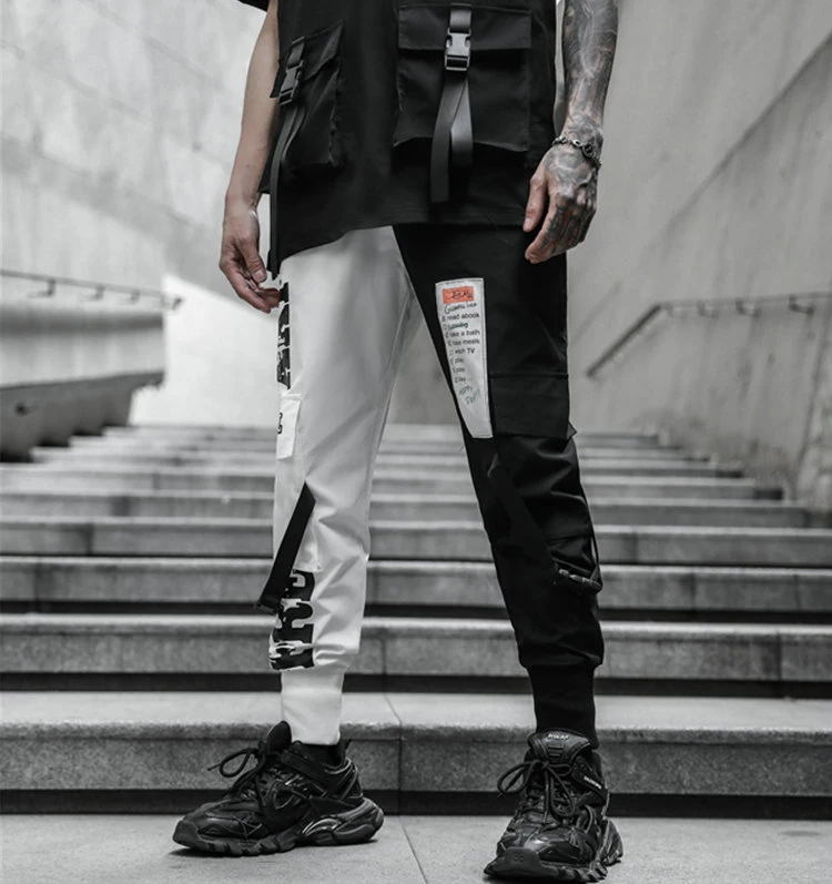 IiDossanбрюки-карго в стиле хип-хоп, мужские весенние черно-белые Л...