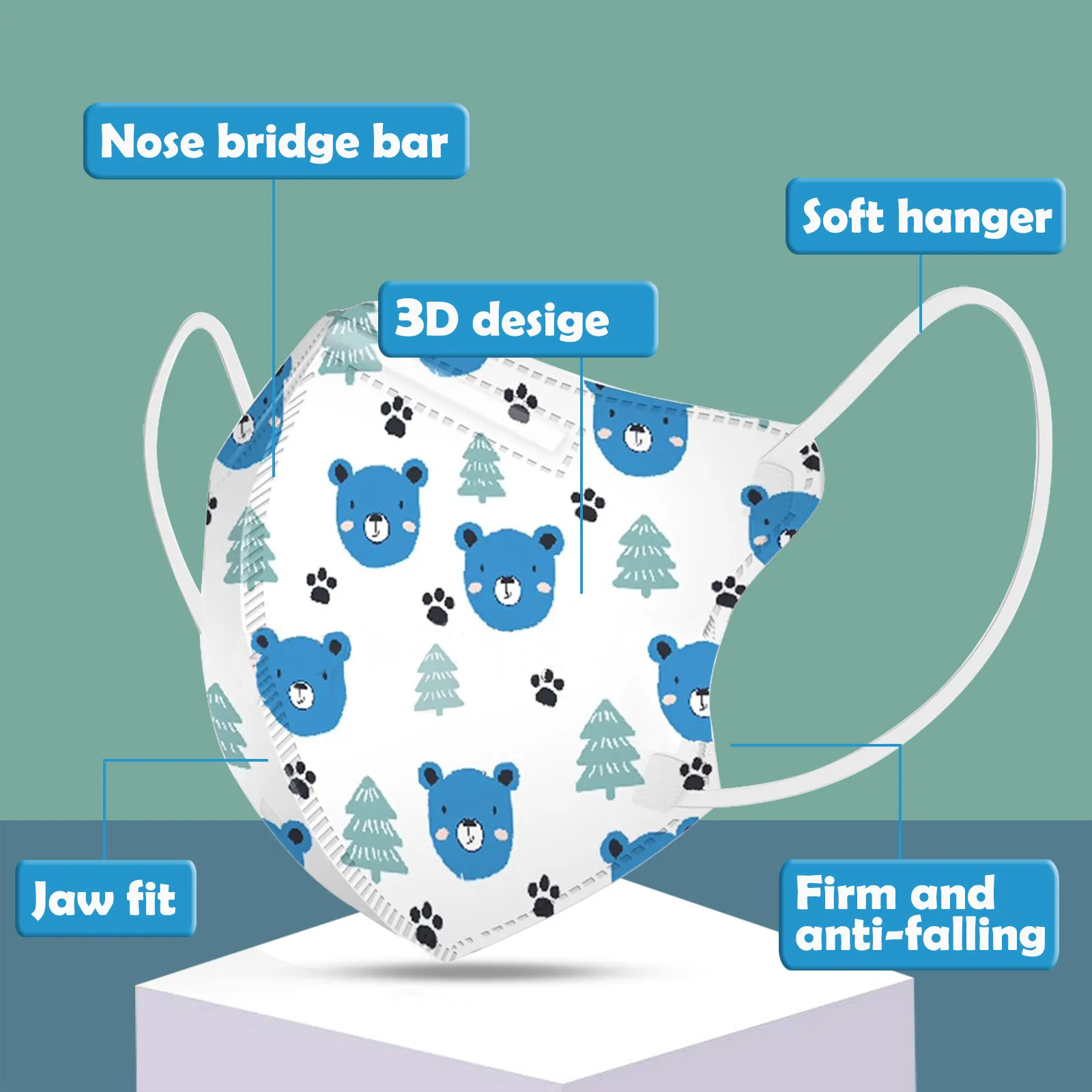 Детская одноразовая маска для лица, 4 слойные маски для ушей