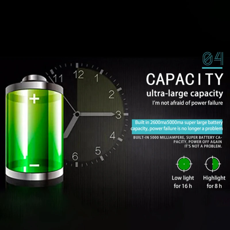 Гуманизированный дизайн: гладкие и тонкие металлические ручки, круглый дизайн, 360 ° без мертвых углов светильник большой площади, легкий и портативный. Он принимает гуманизированный умный кнопочный переключатель, нужно только прикоснуться к светильник, чтобы отрегулировать два вида яркости для удовлетворения различных экологических потребностей.