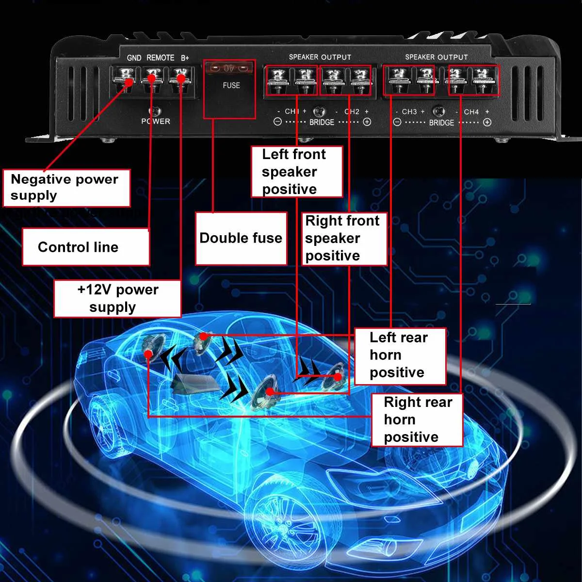 Автомобильный усилитель, 12 В, 7900 Вт, 4 канала