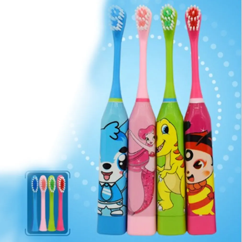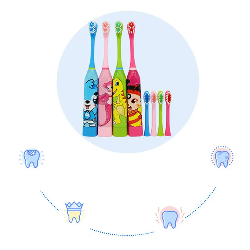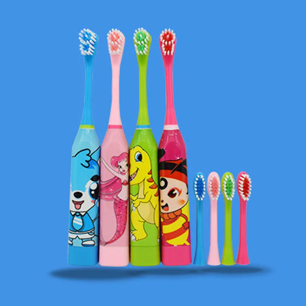 Зубная щетка Детская электрическая двусторонняя с 2 насадками и мультяшным рисунком