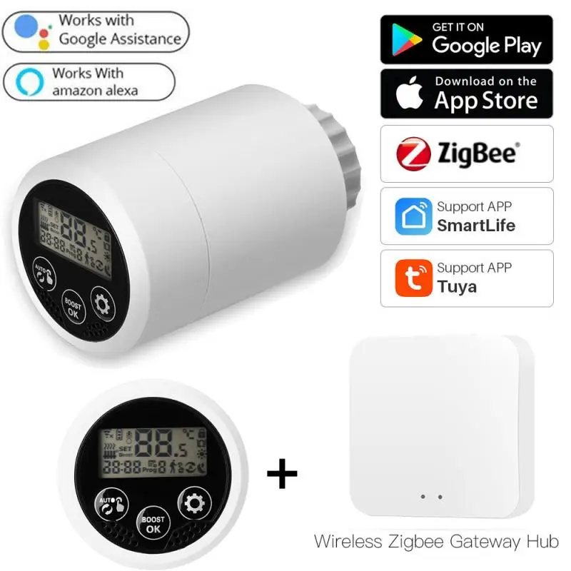 Термостат ZIGBEE с приводом радиатора, умный программируемый пульт управления температурой для Alexa Google Home