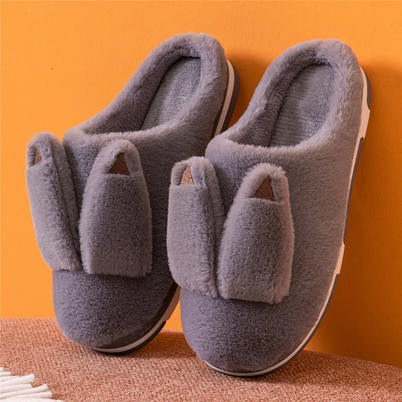 Симпатичные серые домашние тапочки с кроличьими ушками, симпатичные Тапочки в виде кролика, теплая удобная домашняя обувь, женские меховые тапочки для мужчин, женские Тапочки