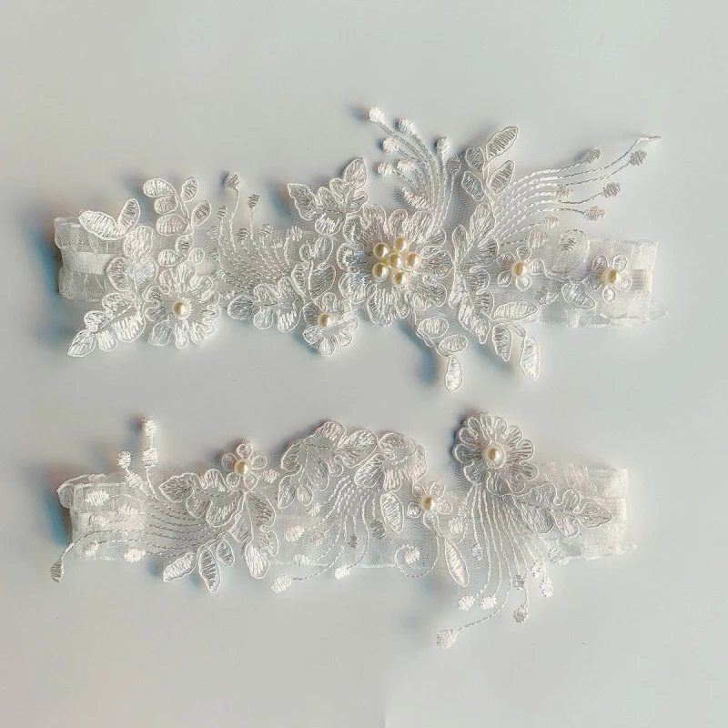 Пояс для невесты с кружевными подвязками и жемчужинами