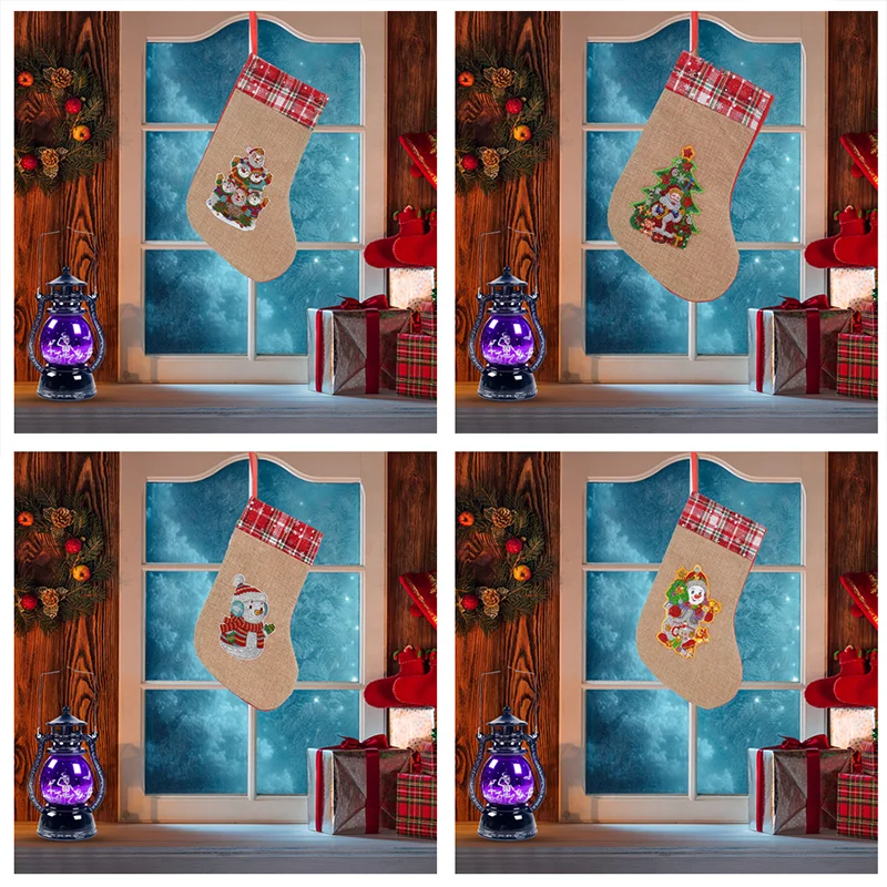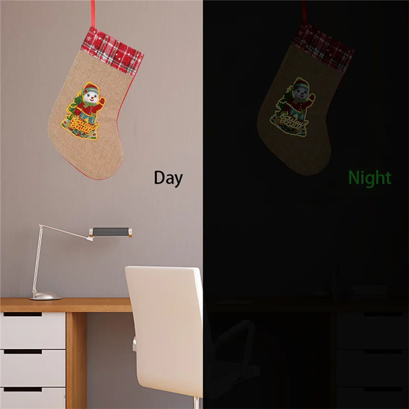 1 шт., новинка, бриллиантовая картина, светящийся Рождественский чулок, носки, Рождественская елка, снеговики, картина, новогодний подвесной декор, сделай сам, поделки, подарок