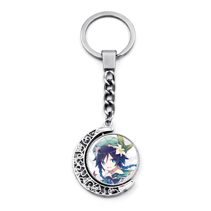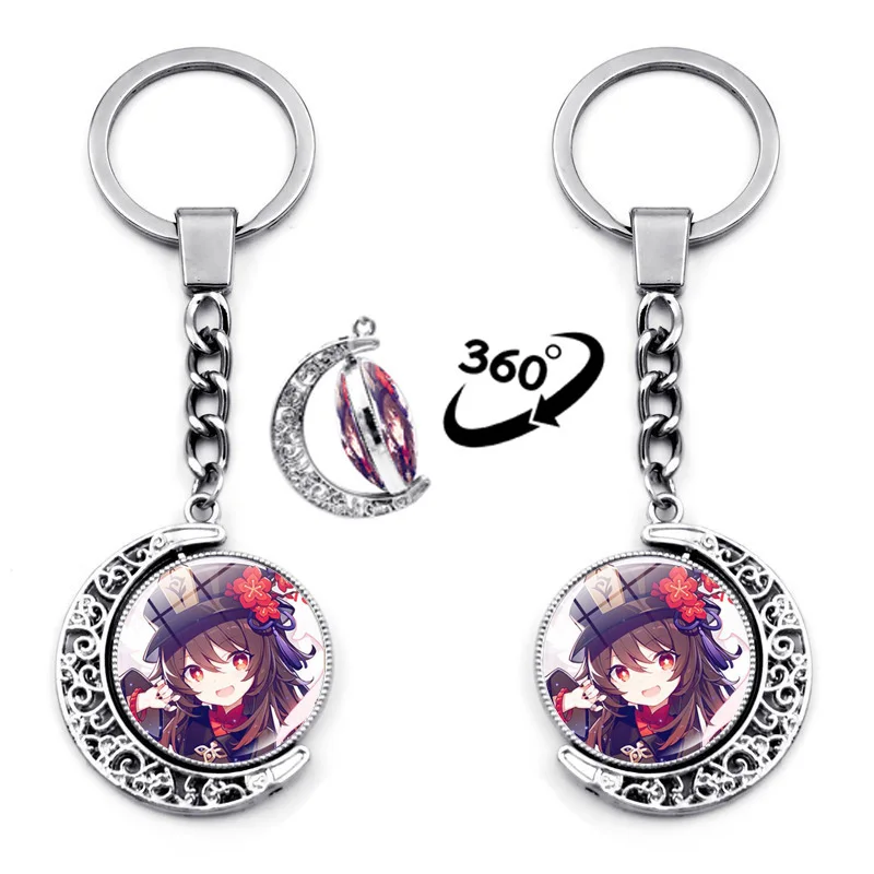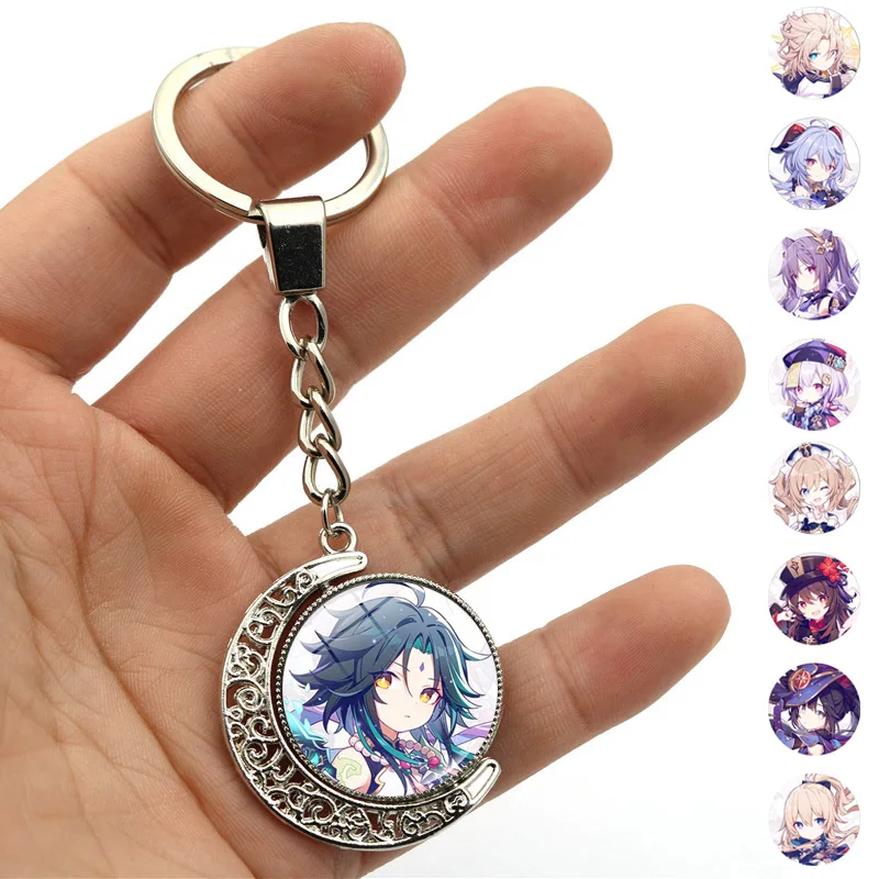 Брелок Game Genshin Impact с мультяшным персонажем, поворот на 360 градусов, подвеска в виде Луны, аниме брелок с подвесками, металлическое кольцо для ключей, подарок для женщин