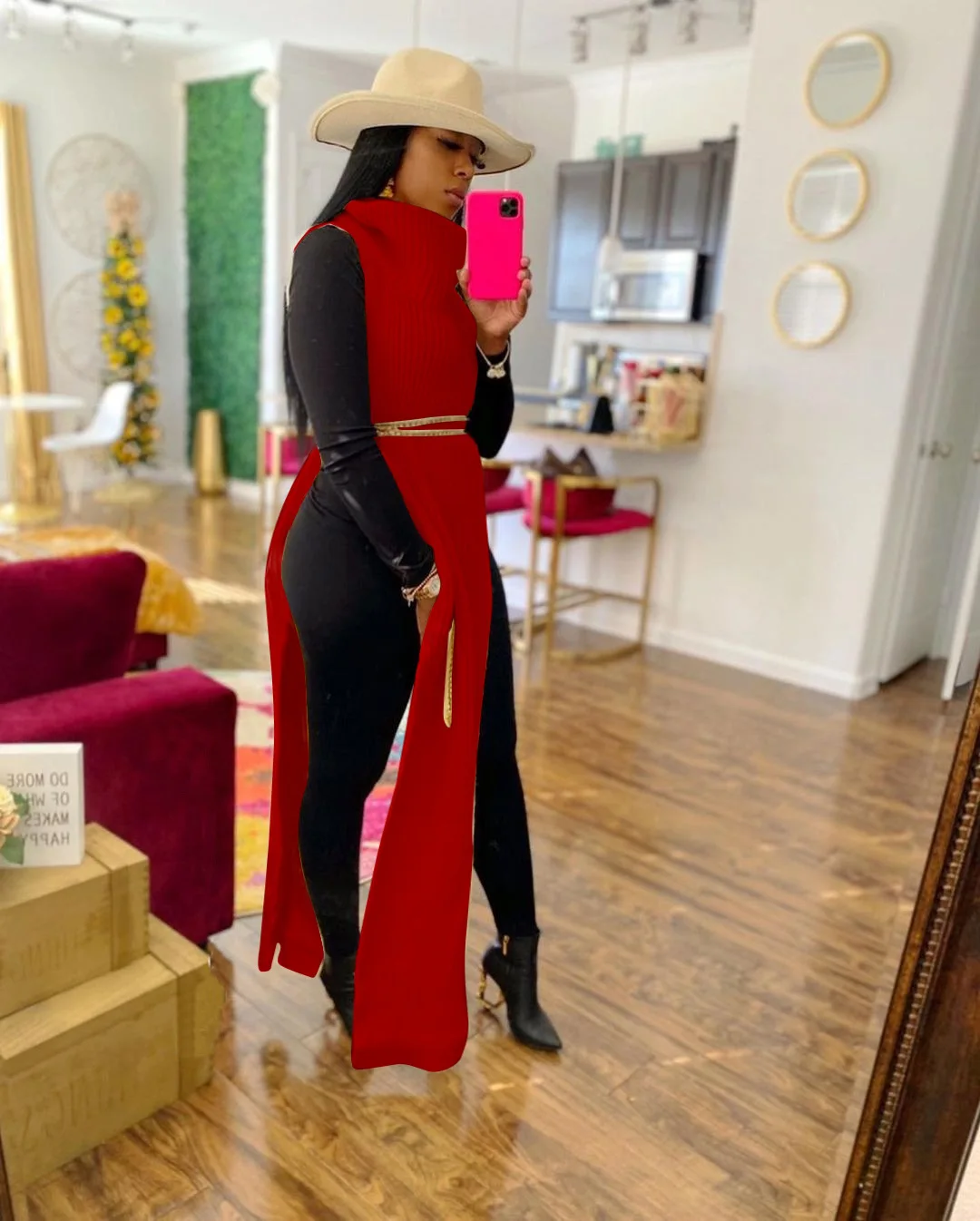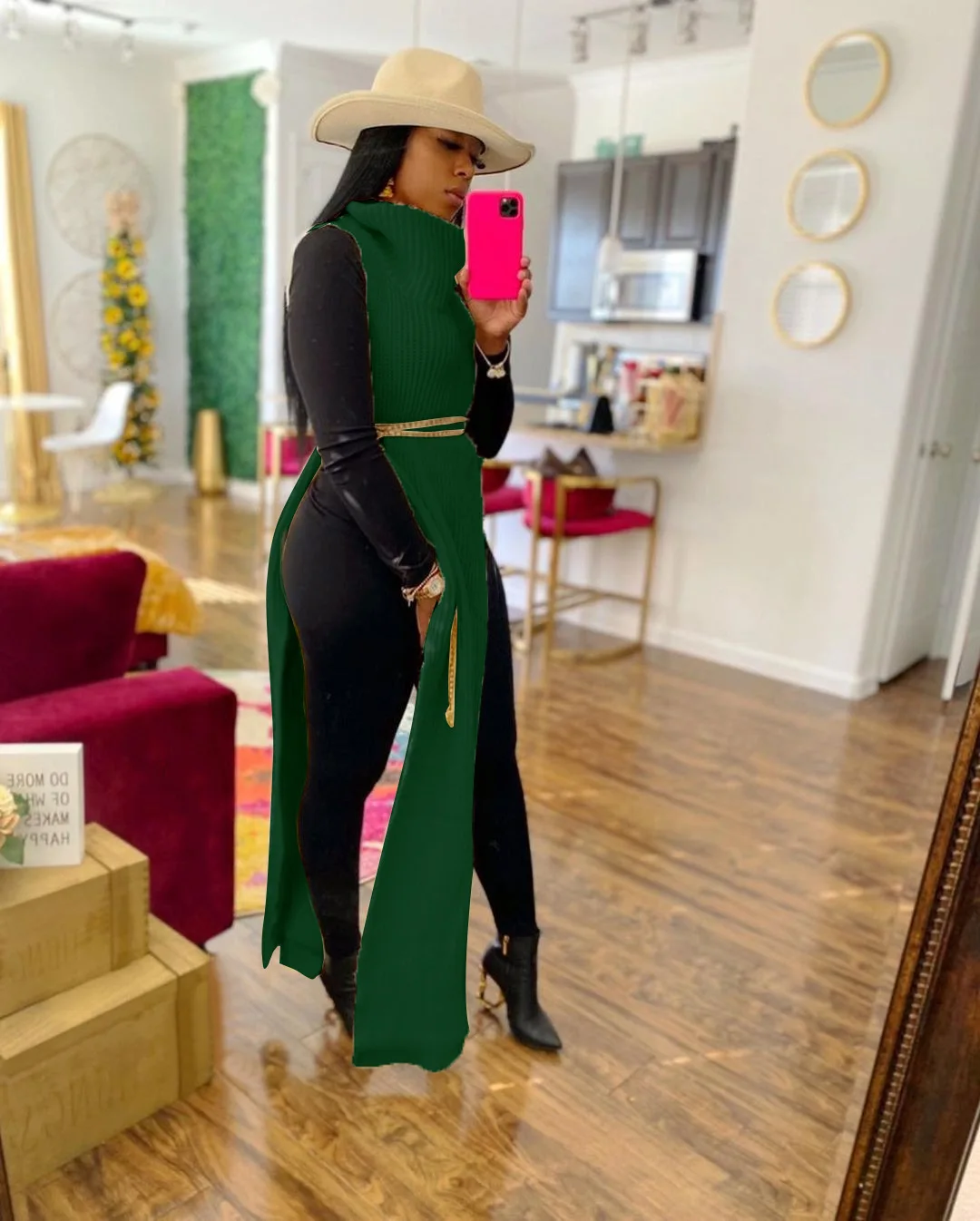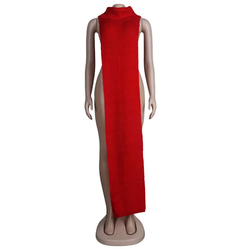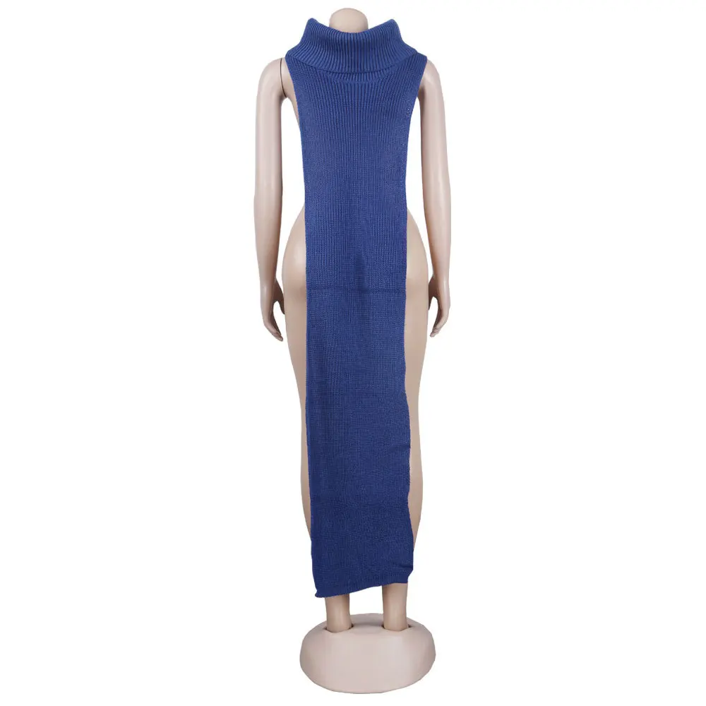 Женское трикотажное платье-свитер без рукавов, с разрезом сбоку