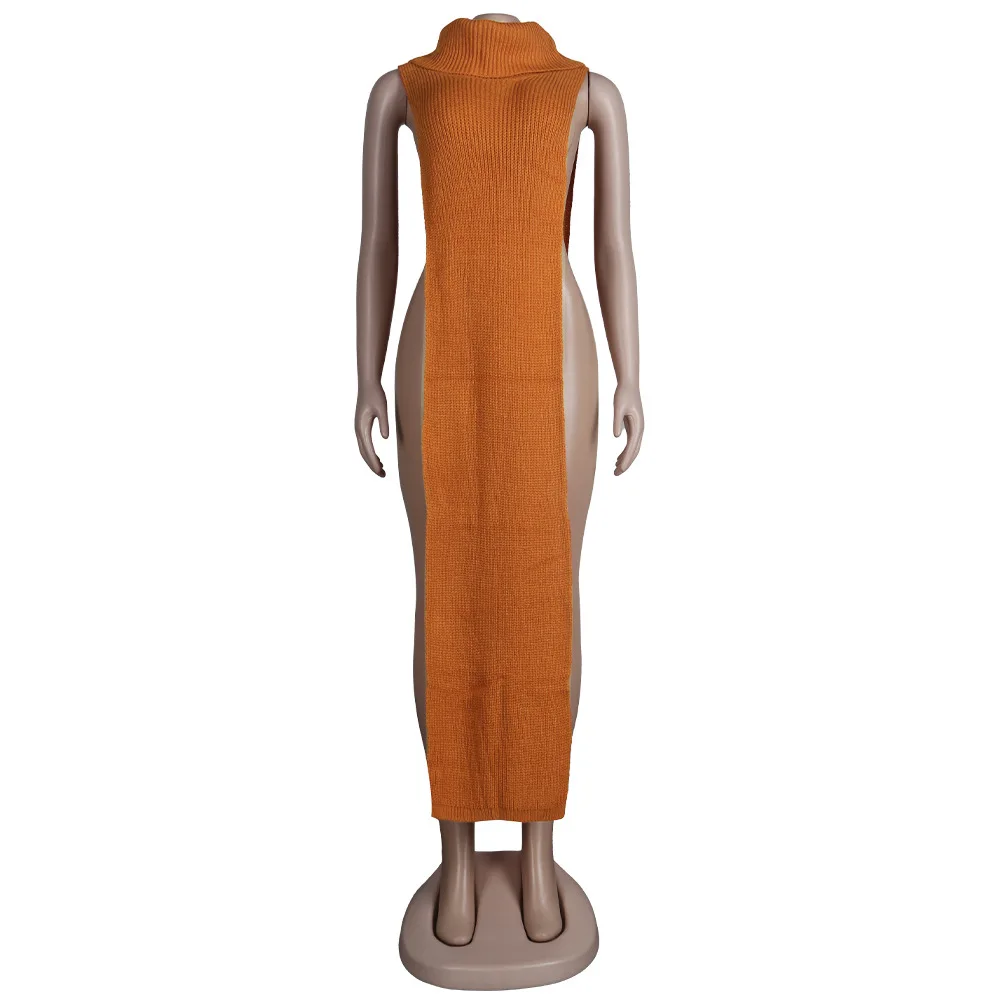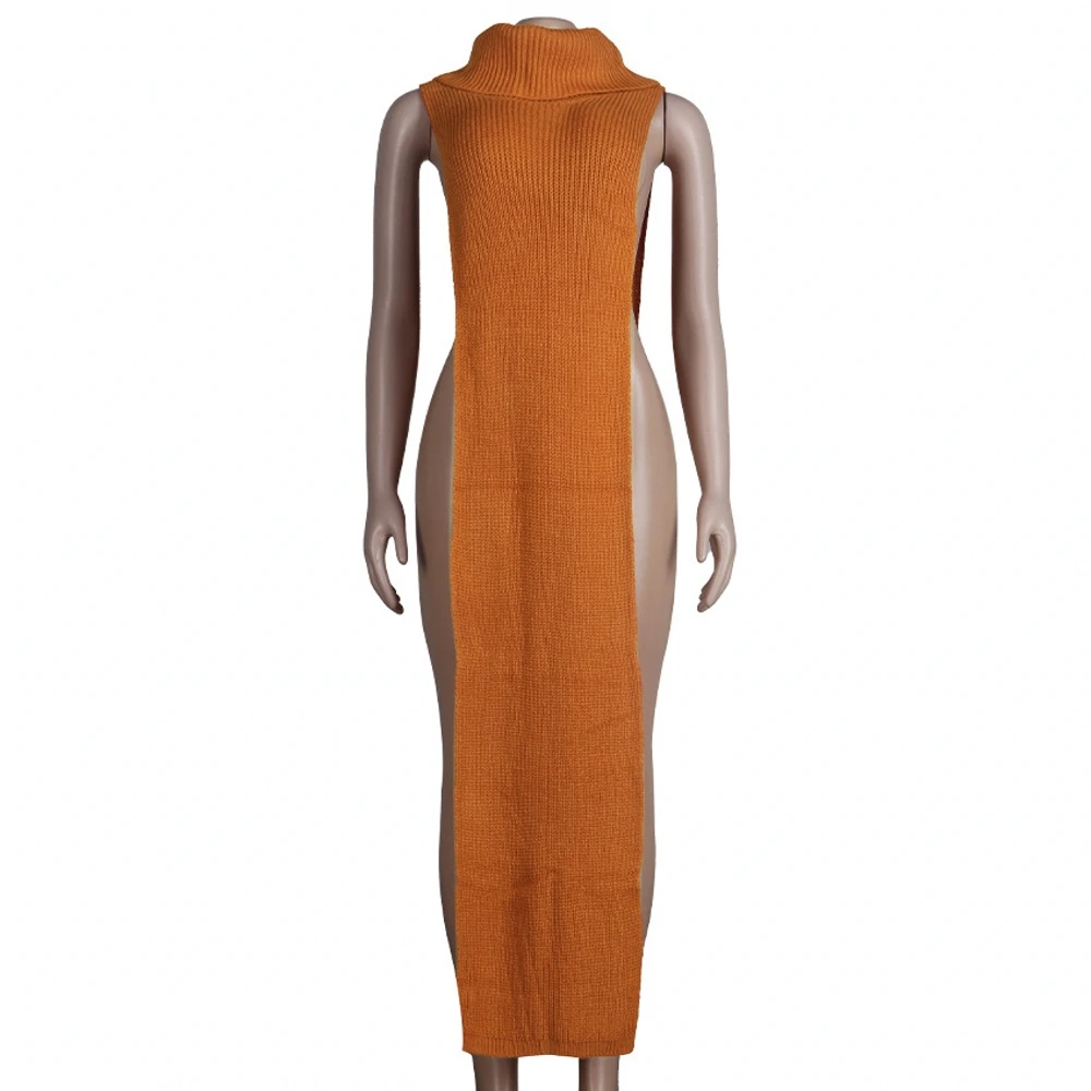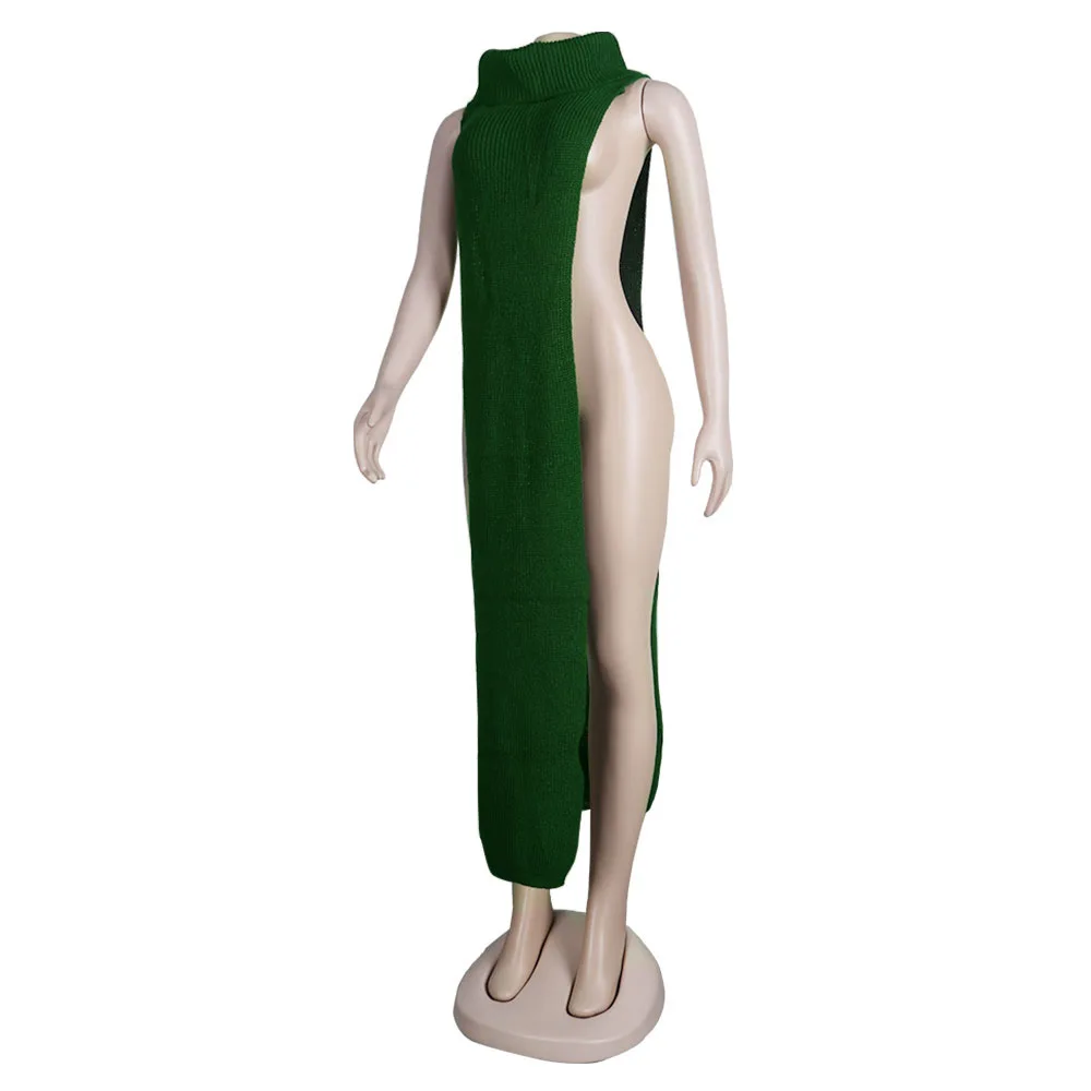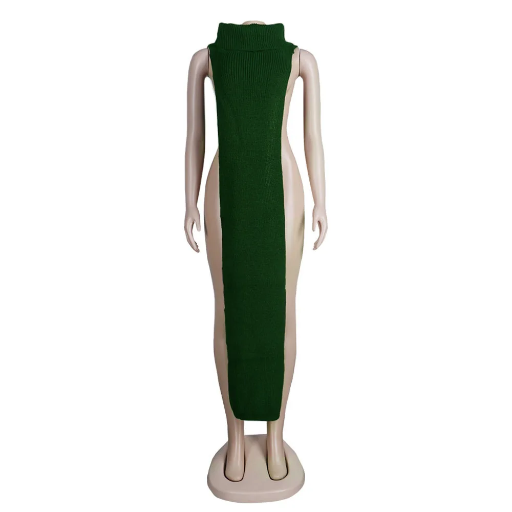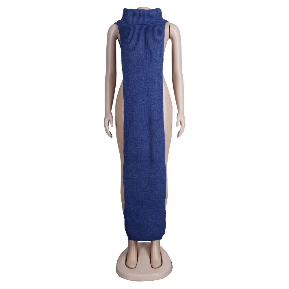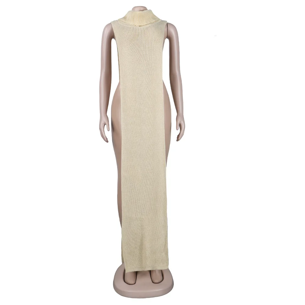 Женское трикотажное платье-свитер без рукавов, длинное платье макси...