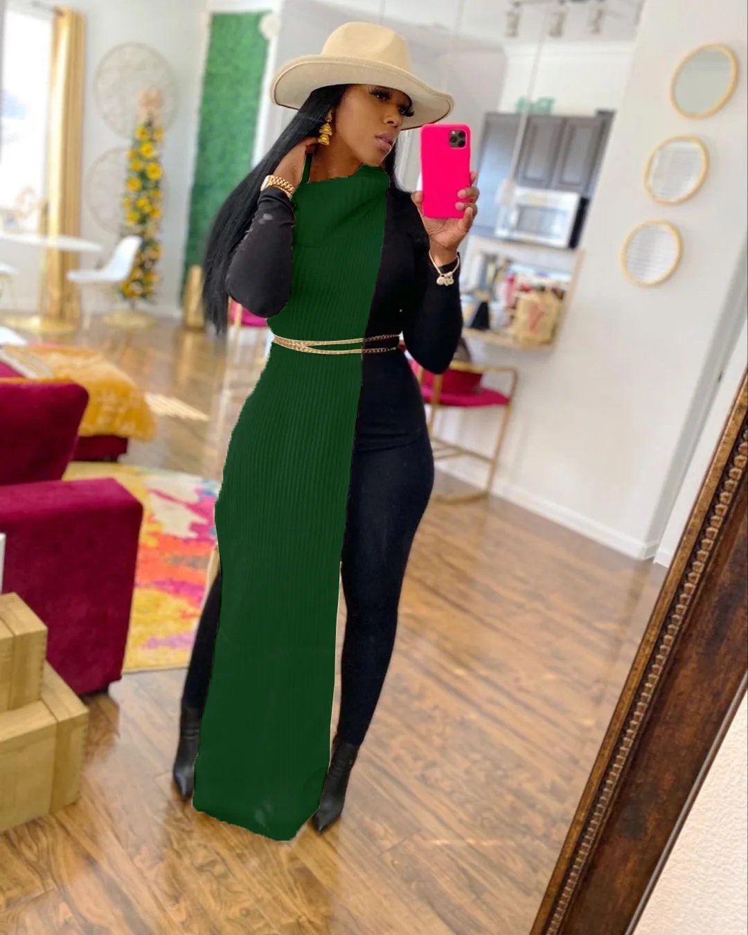 Юбка-карандаш Женская длинная, зеленая, черная, с бахромой, на осен...