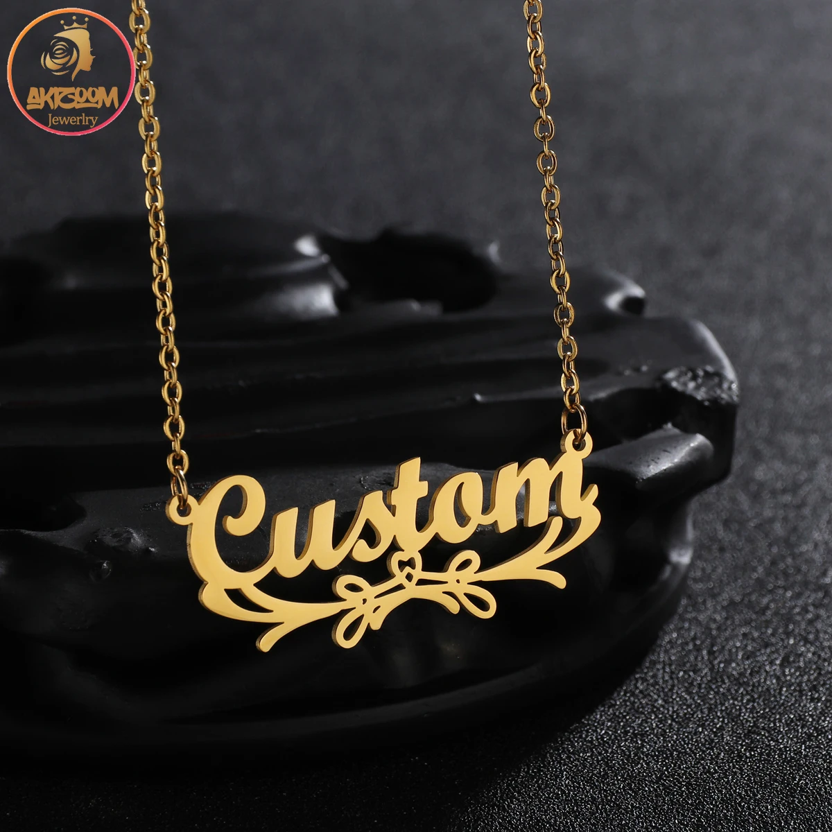 Akizoom, индивидуальное название, нижнее кружевное ожерелье, золотая металлическая цепочка из нержавеющей стали, ювелирные изделия для женщин, индивидуальный подарок