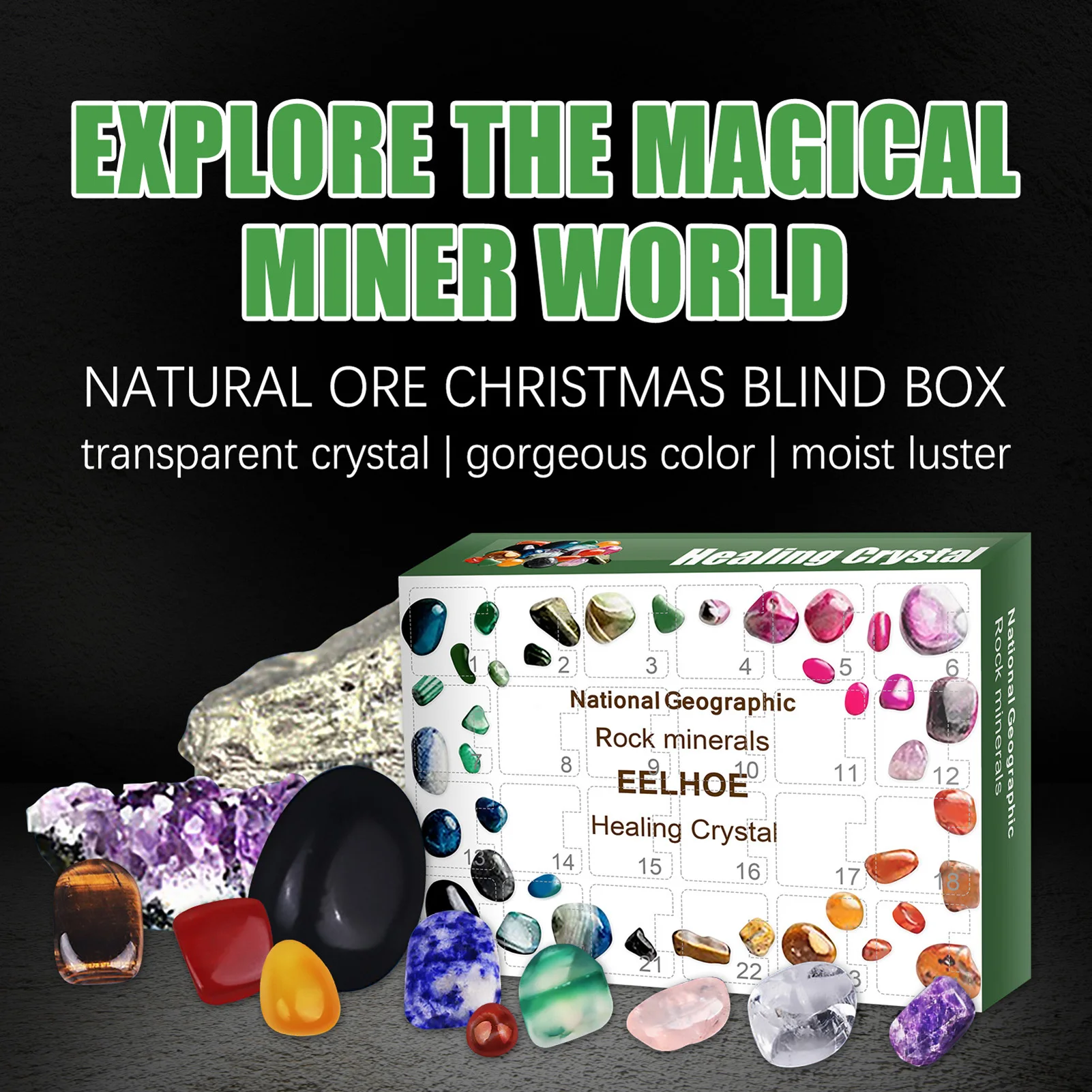 Коллекционная Подарочная коробка, 24 ячейки руды, 24 дня, Рождественский обратный отсчет, календарь, руда, камни, коробка, образцы руды, натуральные камни