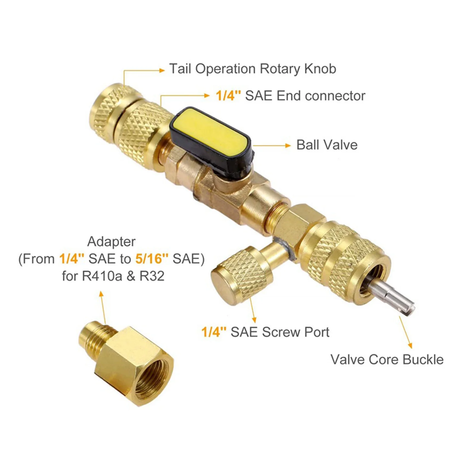 Инструмент для снятия сердцевины клапана R410A R22, монтажный инструмент двойного размера SAE 14 и 516 портов для системы ОВКВ R404A R407C R134A R12 R32