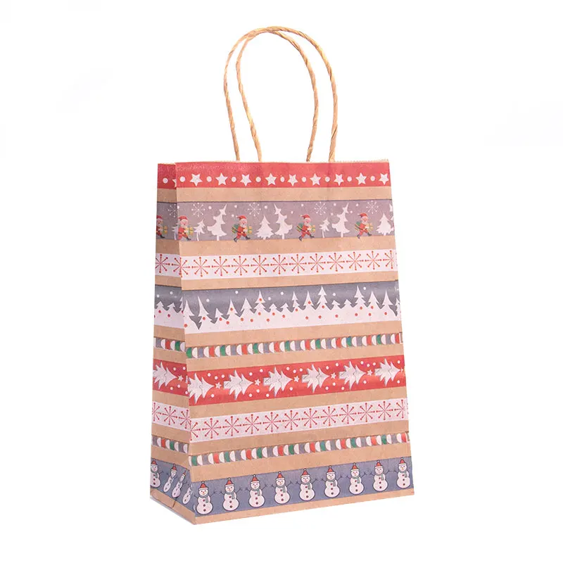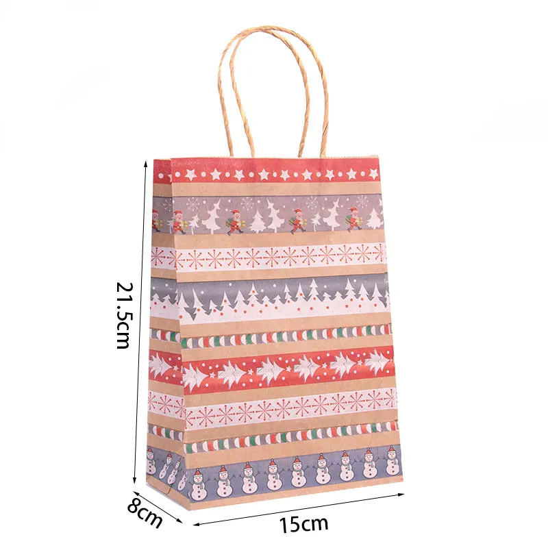 Рождественские подарочные пакеты из крафт-бумаги, 5 шт., Набор для вечеринок, конфетный мешок для печенья с рождественскими наклейками, пеньковая веревка, новогодний подарочный пакет