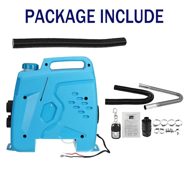 Посылка:1 хост воздушного нагревателя1 х клавишный переключатель2 х впускной трубы1 х выхлопная труба7 x зажимов5 x винт1 х гайка1 х масляный насос1 ИнструкцияОсобенности:-Простота установки, экономичность и удобство. Может использоваться в качестве размораживания оконного стекла, но также для кабины, студии, каюты теплоизоляционных услуг.-- Все в одном блоке, экономит место и легко перемещается.-Нагреватель может быть применен для нагрева кабины грузовых автомобилей, аккумуляторных батарей автомобилей и всех видов других транспортных средств.-Летучая технология, с помощью керамической вилки зажигания нагревание топлива испаряется в газ, быстрое зажигание, полное сгорание-Дальность дистанционного управления может достигать 50 м-- Большой экран цифровой дисплей-Четыре отверстия воздуховодаСпецификация:Мощность: 8 кВтНапряжение: 12 В или 24 В (опционально)Цвет: синийРазмер: 34*17*40 см/13,4*6,7*15,7 ДюймовЭффективное расстояние дистанционного управления: 50 метровПримечание:1. Замеры сделаны вручную, поэтому возможны 0,5-1 см из-за различий в связи с тем, что измерения выполнены вручную.2. В связи с использованием разных по светильник экране монитора фактический цвет товар точно такой же, как и цвет изделия на фото может быть s светильник ly отличается из-за характеристик монитора компьютера.