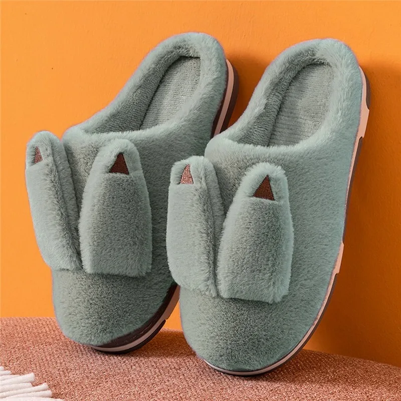 Симпатичные серые домашние тапочки с кроличьими ушками, симпатичные Тапочки в виде кролика, теплая удобная домашняя обувь, женские меховые тапочки для мужчин, женские Тапочки