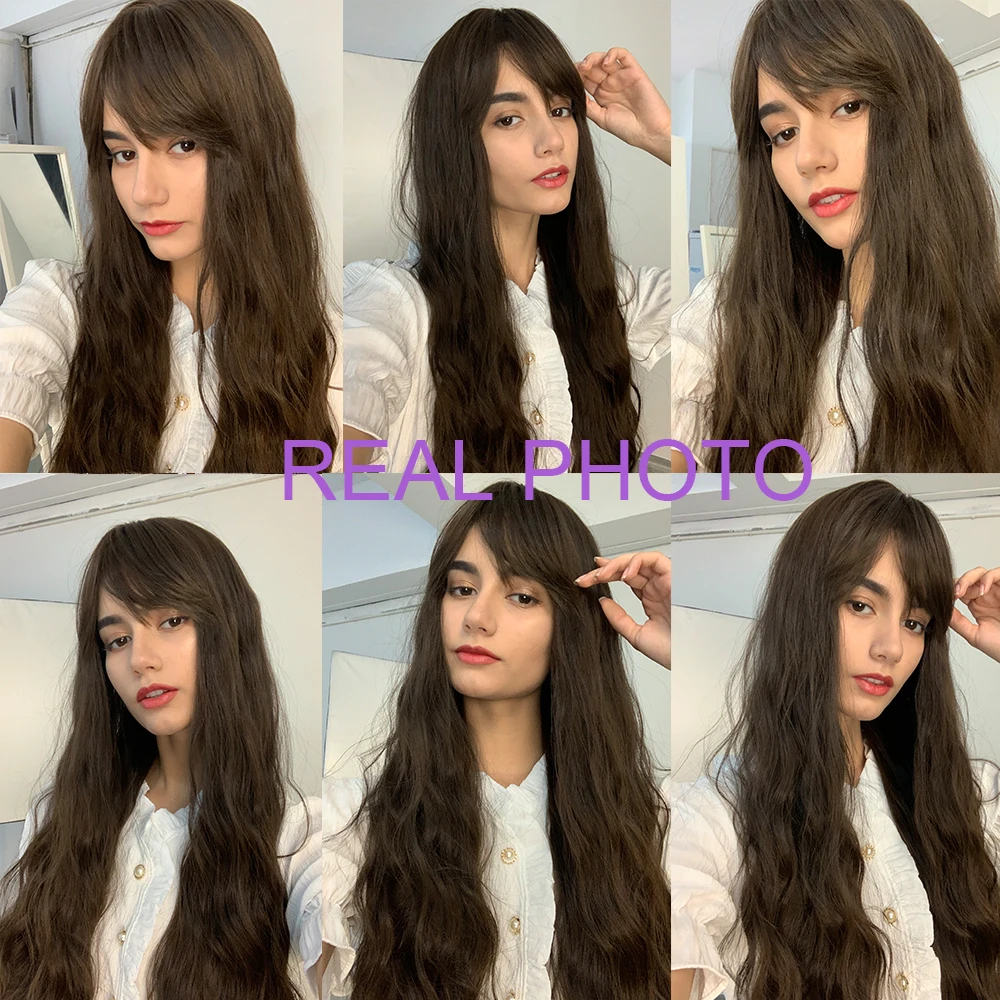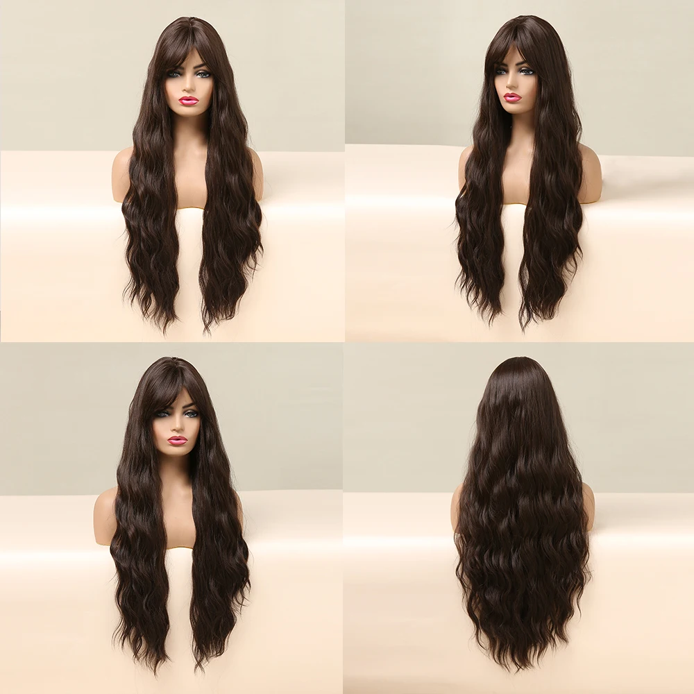 EASIHAIR Длинные темно-коричневые волнистые синтетические парики для женщин натуральные волосы парики с челкой каждый день термостойкий косплей парик