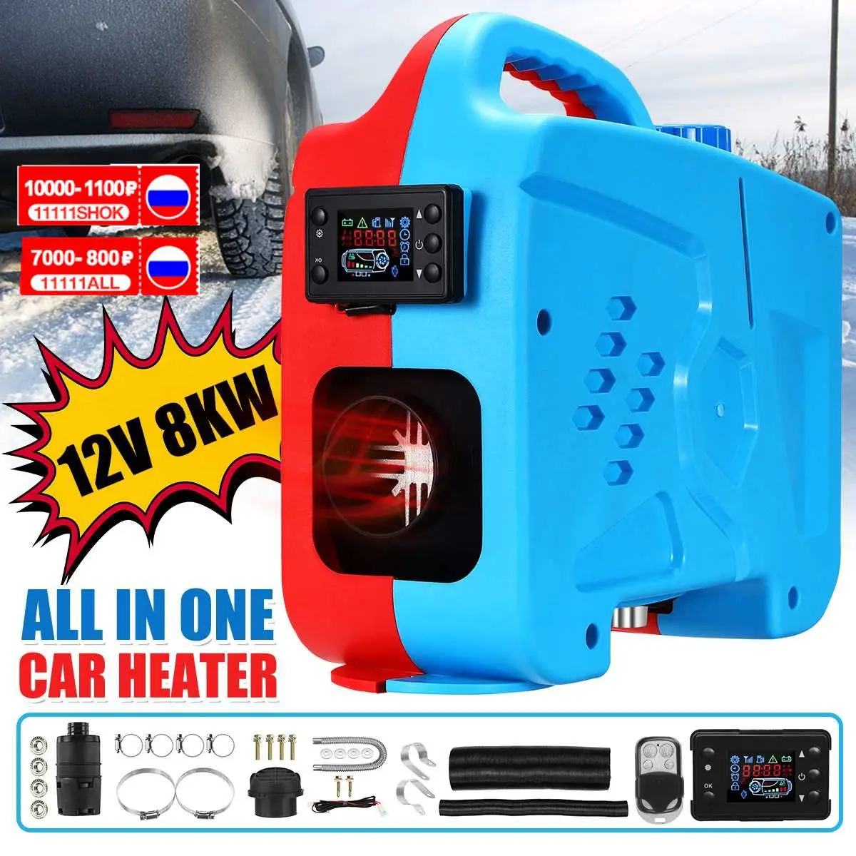 Автомобильный обогреватель, 1-8 кВт, 12 В, Дизельный подогреватель воздуха, с одним отверстием, ЖК-монитор, стояночный обогреватель для автомобилей, грузовиков, автобусов, лодок, автофургонов