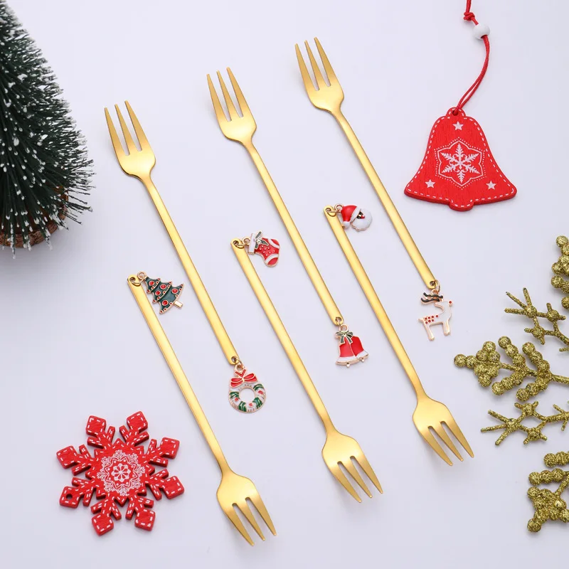Новогодние украшения для дома, 6 шт.компл., металлическая вилка для кофе, лопатки, украшения для рождественского стола, новый год, Рождество, 2021