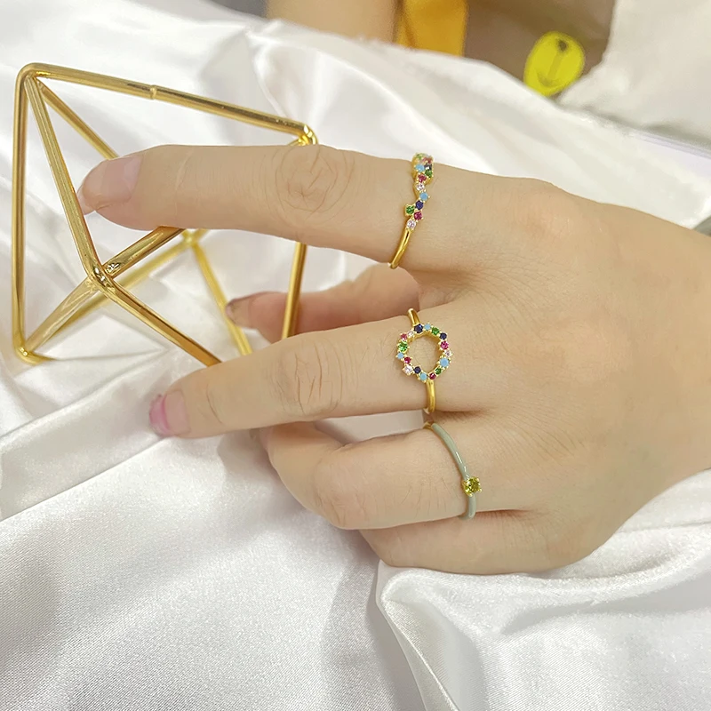 Women JewelryMinimalist Thin Circle Gem Rings Jewelry Carving S925