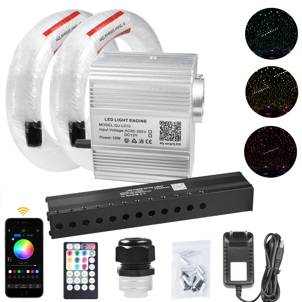 Волоконно-оптисветильник вой двигатель, 10 Вт, RGBW мерцающий, с эффектом метеорита, 2 шт., 0,75 мм * 200 шт. * 2 м, светящийся волоконно-оптический светильник вой кабель