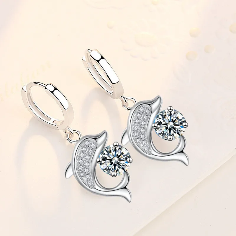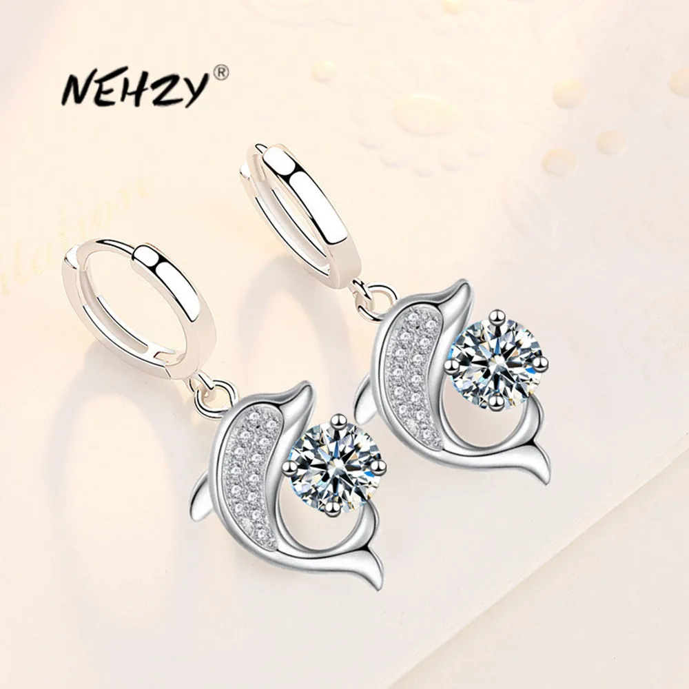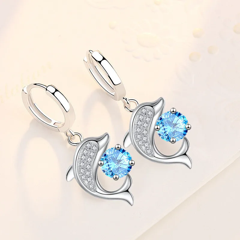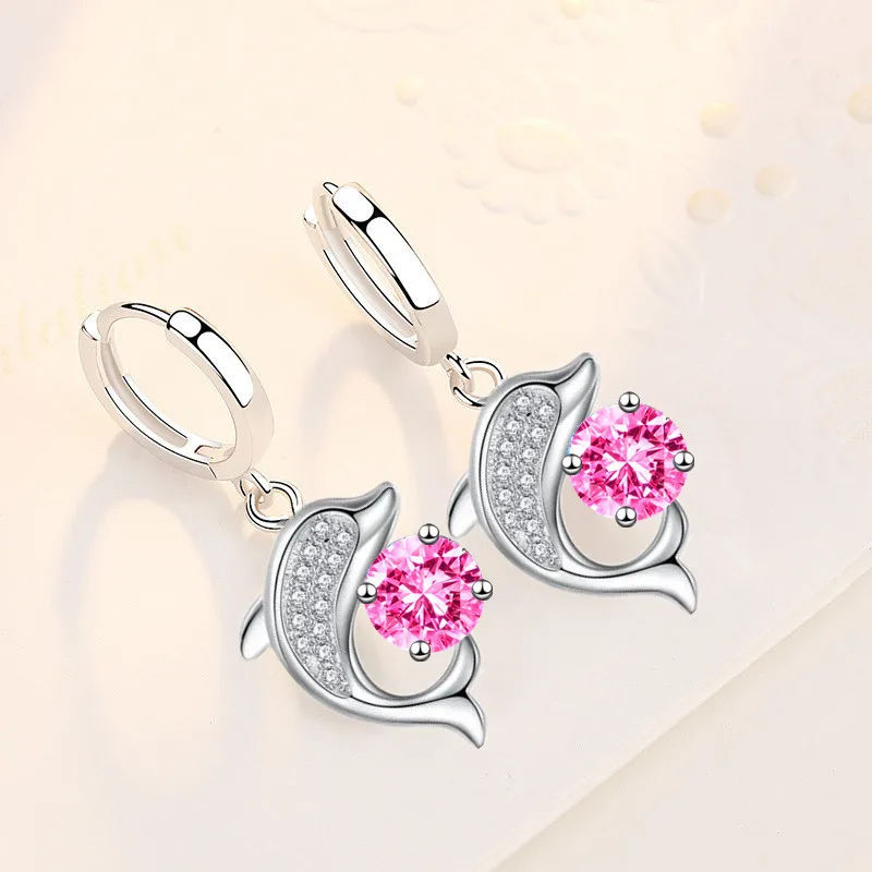 Женские серьги из серебра 925 пробы с голубым и розовым кристаллом