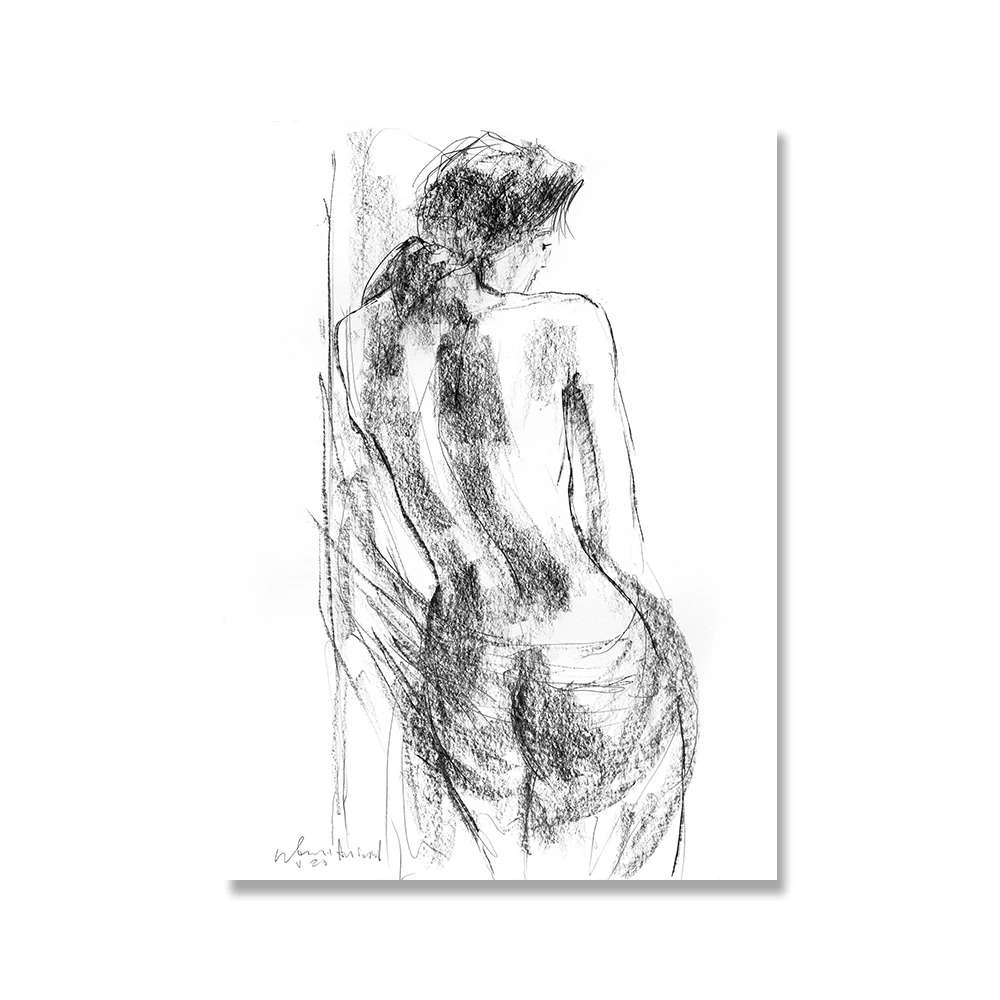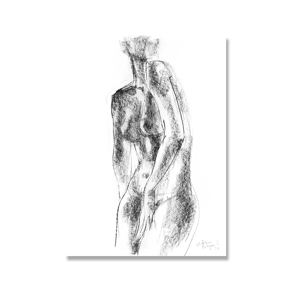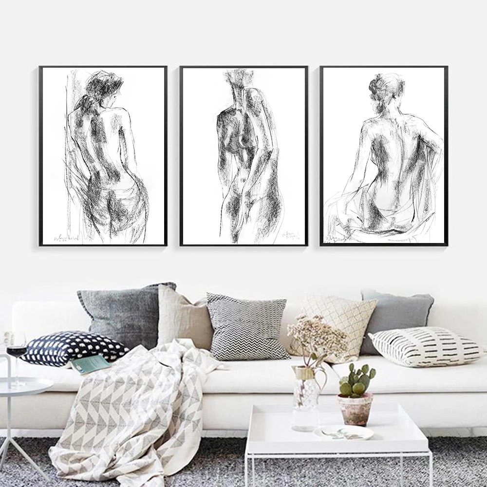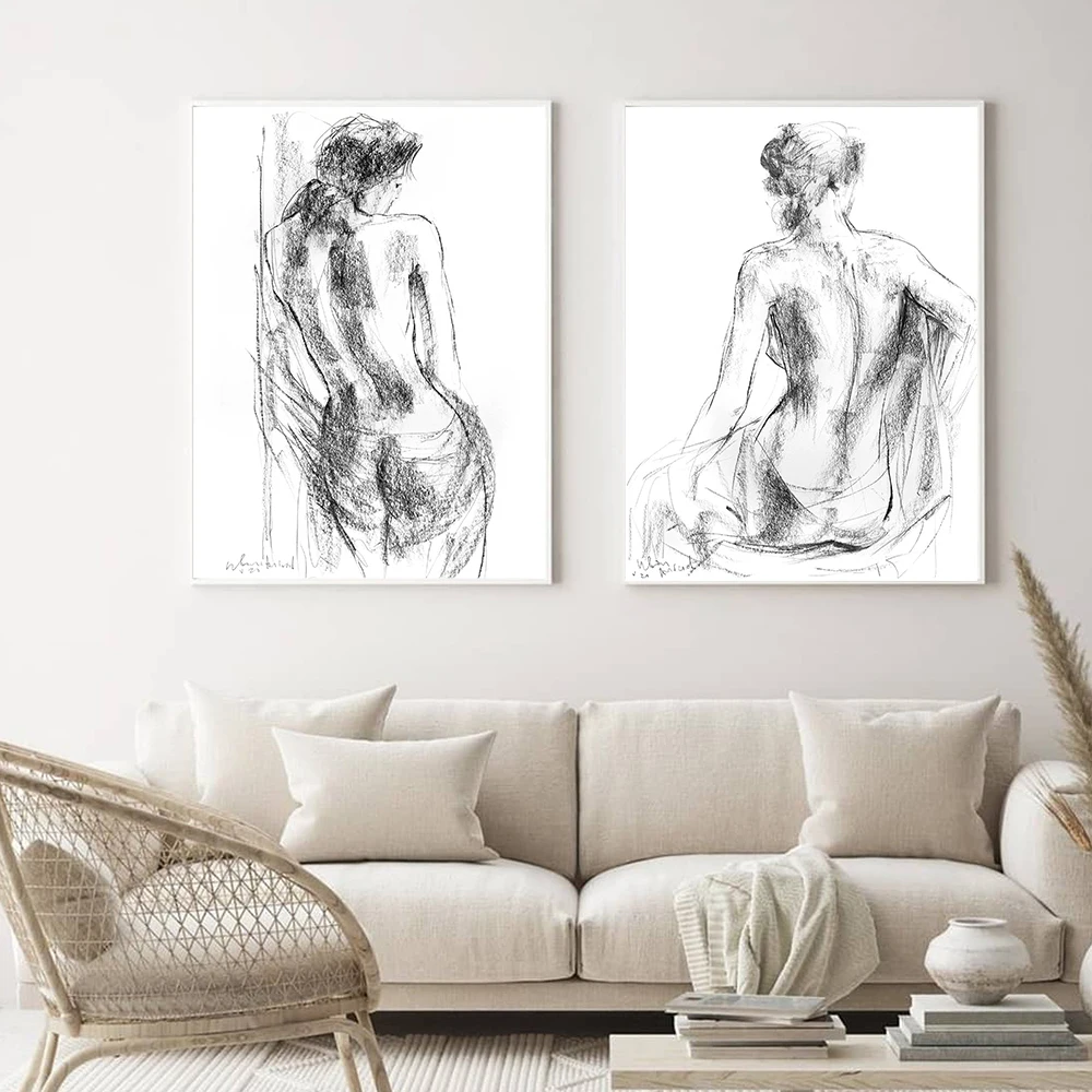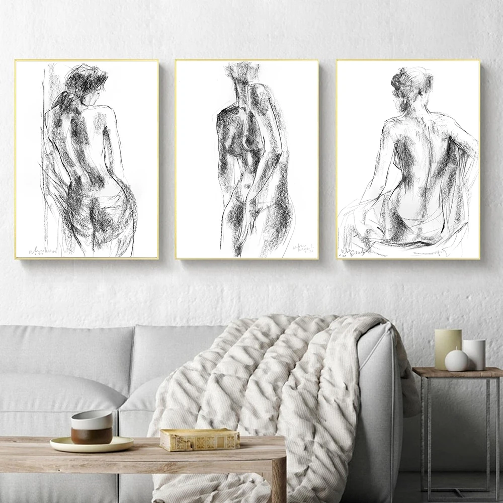 Абстрактная Женская Живопись на холсте Черно-белая Обнаженная эскизная женщина Плакаты для ванной Hd Печать украшение для спальни настенные картины