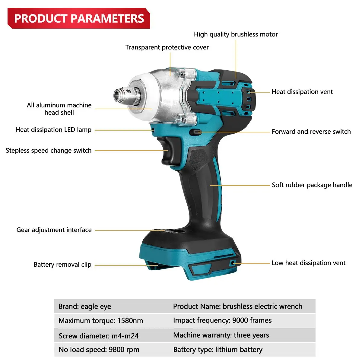 18 в 800Nm бесщеточный ударный гайковерт беспроводные 1/2 разъем питания Электрический гаечный ключ для электроинструмента (не включая батарею)