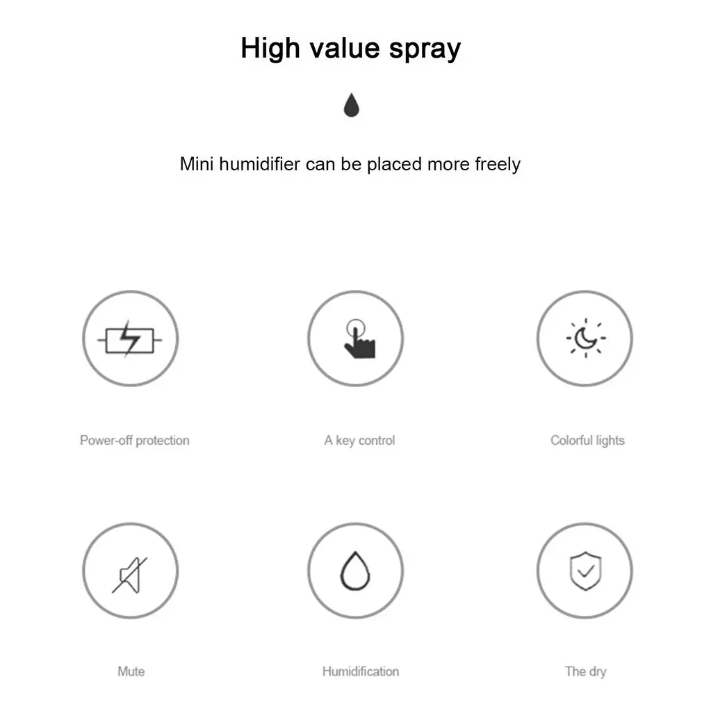 Особенности: 1. Количество вспыхивающего тумана: дайте коже быстро пить полную воду, что может эффективно повысить влажность воздуха в кондиционированном помещении и комнате отопления, чтобы сохранить вашу кожу увлажненной в любое время. 2. Глубокое увлажнение: молекулы воды достигают нижней части кожи и увлажняют не только на поверхности, а нежные частицы воды достигают нижней части мышцы для глубокой гидратации, позволяет коже впитывать воду, как губка. 3. Маленький: он может быть маленьким и портативным, где он находится, и его можно хранить в любое время, и он может быть тихим и увлажненным, где бы он ни находился. 4. Обновление до большой емкости: Нет необходимости часто добавлять воду, большая емкость, один раз вода может быть непрерывно увлажнена, не нужно часто добавлять воду и наслаждаться комфортной окружающей средой. 5. Очистите воздух: Этот увлажнитель воздуха может распылить водяной туман, чтобы очистить воздух и сохранить воздух влажным и свежим. Описание: Этот продукт представляет собой usb-увлажнитель, с большим количеством тумана, пополнением глубокой воды и улучшенной большой емкостью. Характеристики: Номинальная мощность: 3,5 W Номинальное напряжение: 5 В Материал/Корпус: PP пластик Минимальная Емкость: 10 мл Характеристики продукта: 70*70*95 мм Частота вибрации: 3,0 МГц Посылка включает в себя: 1 * USB увлажнитель