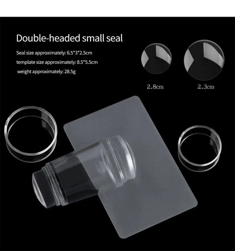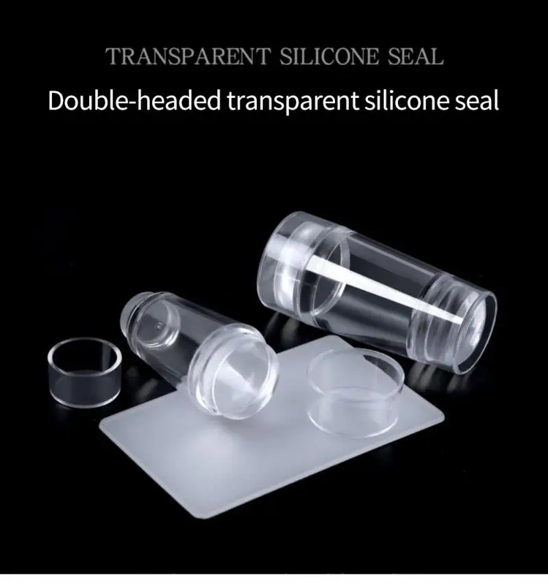 Новинка 2021, двухсторонний штамп для ногтей, прозрачные ручки, силиконовые уплотнения, скребок для маникюра, блестящий инструмент для дизайна ногтей