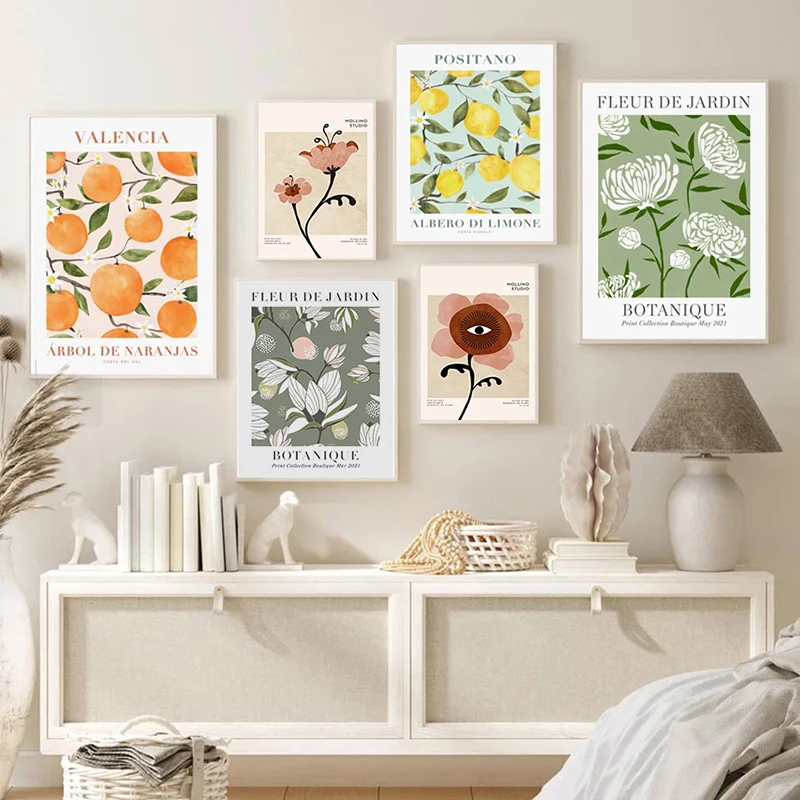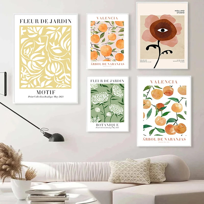 Винтажный абстрактный постер сада цветов и фруктов на рынке, ботанические принты, настенная живопись на холсте, украшение для гостиной и спальни