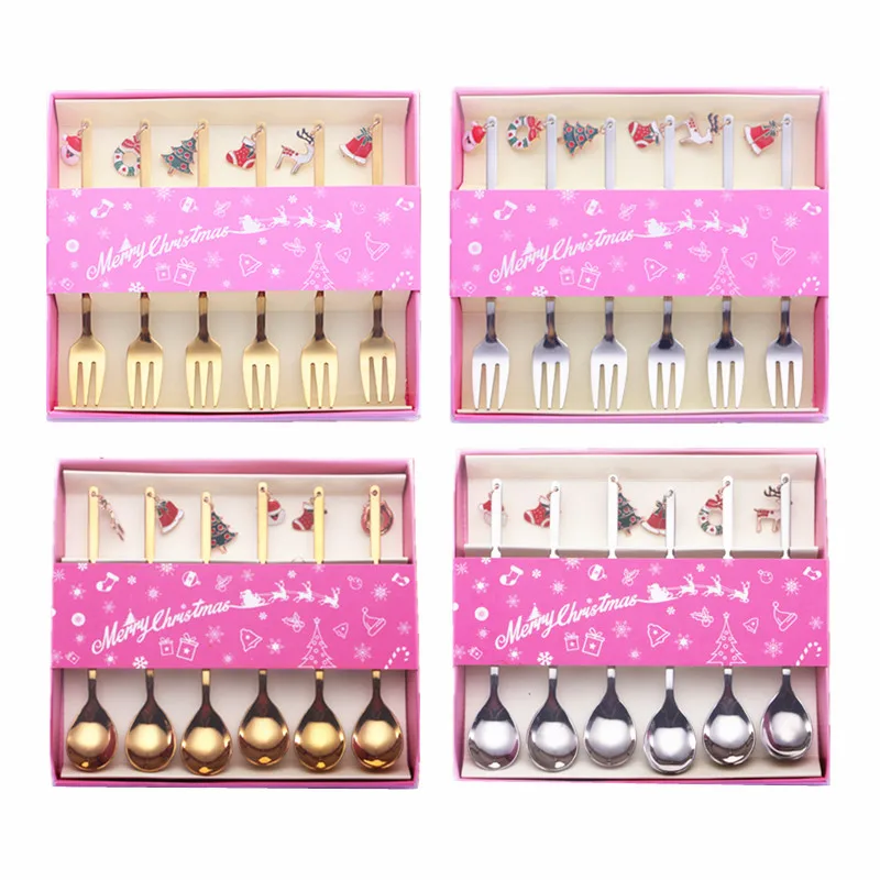 6 шт., новогодние металлические ложки для кофе, вилки, украшения дл...