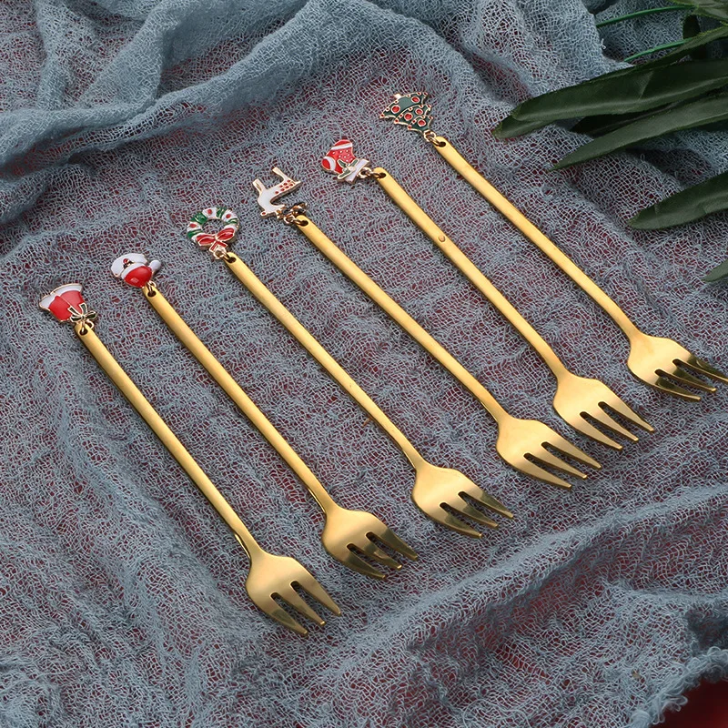 6 шт. металлические кофейные вилки перемешивающие совки рождественс...
