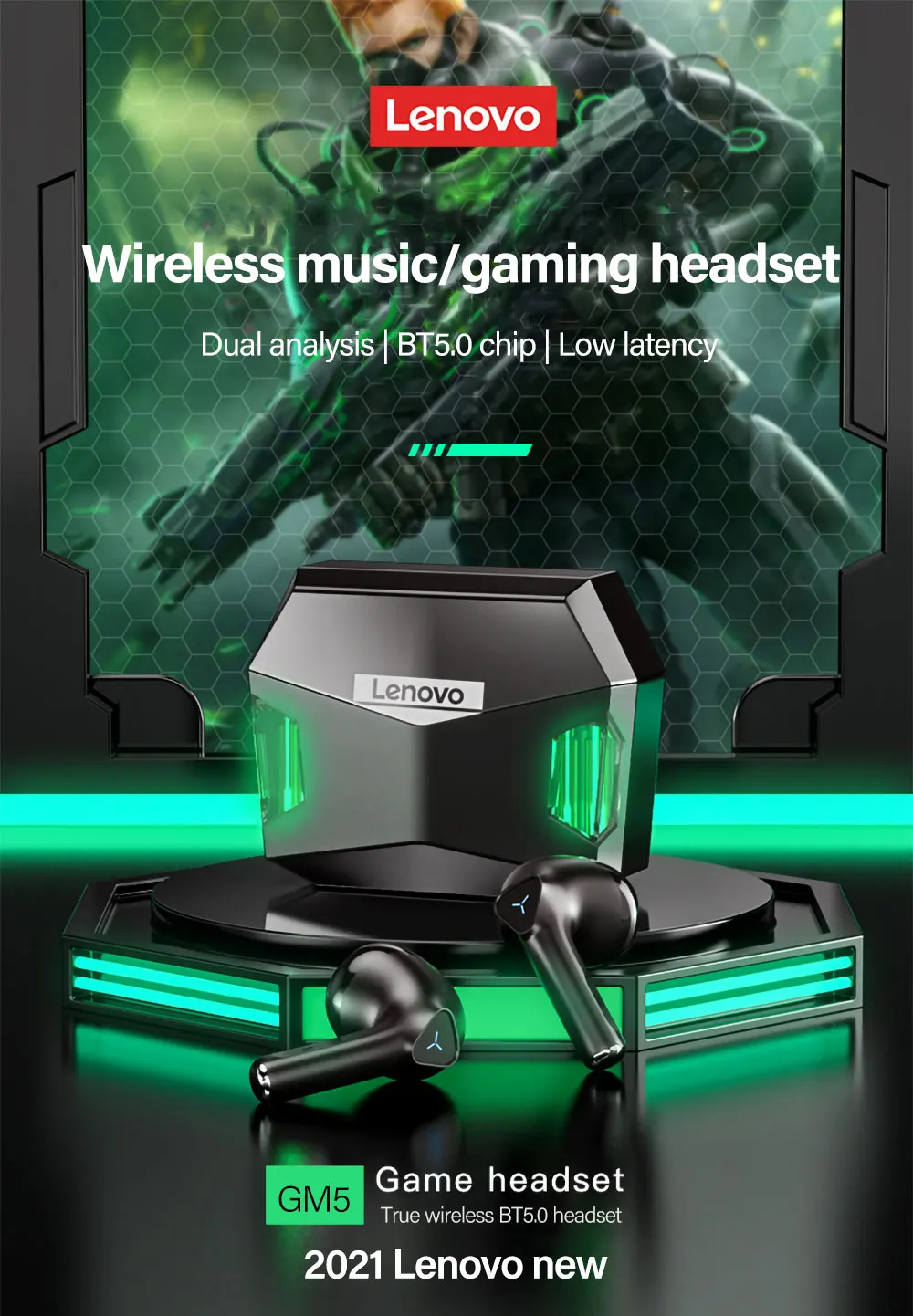 Беспроводные Bluetooth-наушники Lenovo GM5, 5,0 TWS, игровая гарнит...