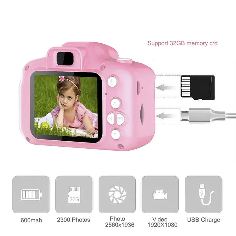Цифровая мини-камера L2 для детей, игрушка, экран 2 дюйма HD, зарядка через USB, подарок для детей, пленочная камера Polaroid с автофокусом