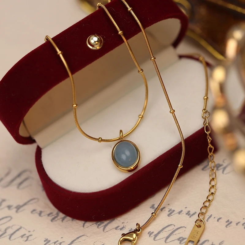 Новая позолоченная цепочка из нержавеющей стали с овальными бусинами цвета морского голубого золота 18 К, бриллианты, цепочка до ключиц для женщин, ювелирные изделия для матери, выпускного вечера, подарки