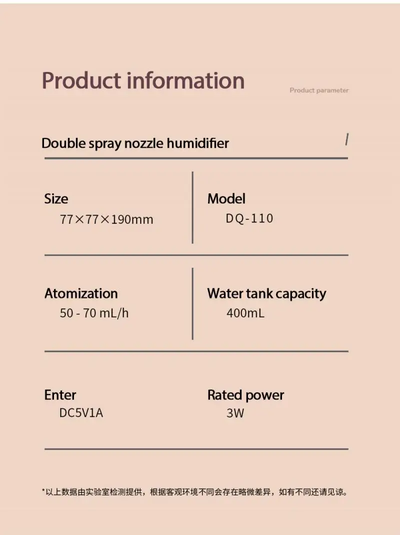 Увлажнитель-ночсветильник с двойным распылителем, 400 мл, USB